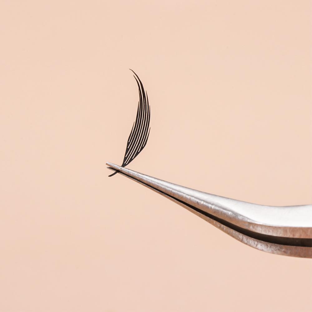 2. Тонкое заостренное основание: Наши ресницы имеют очень маленькое, безкорневое, тонкое основание. Таким образом, они очень хорошо соединяются с натуральными ресницами, как классические, не утяжеляют ресницы, а места соединения ресниц бесшовные, открытые и пушистые, без усилий и без повреждения натуральных ресниц!