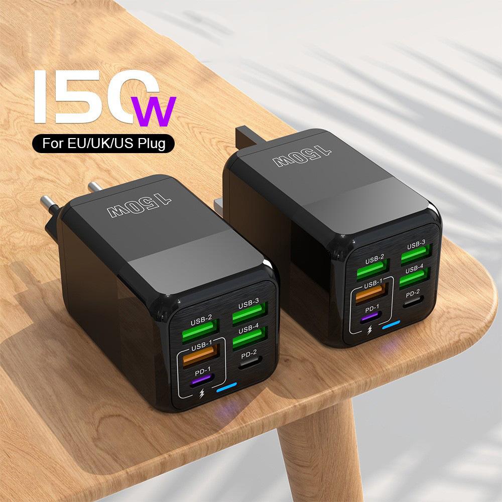 150 Вт 6 портов Pd QC 4.0 Usb C быстрое зарядное устройство настенный адаптер супер быстрая зарядка для iPhone Samsung Ipad Xiaomi Huawei Oneplus Oppo