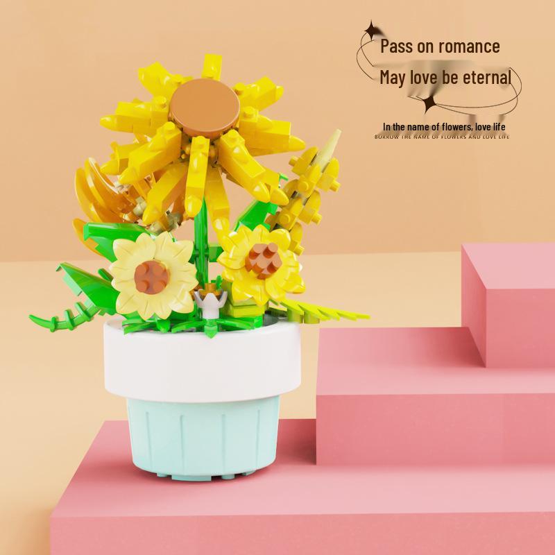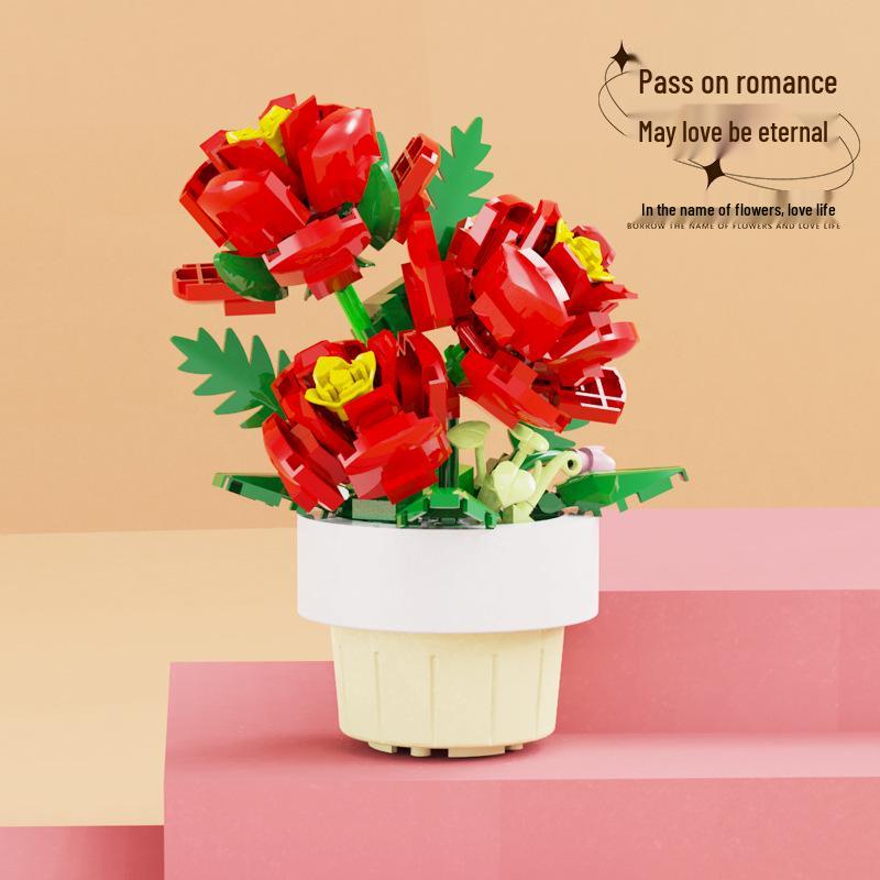 Potted Plant Building Block Toys: Succulent & Preserved Flower LEGO-Compatible Ornaments for Christmas