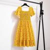 Женское шифоновое платье с цветочным принтом, повседневное летнее осеннее, с коротким рукавом, эластичной талией, А-силуэта, миди, модное