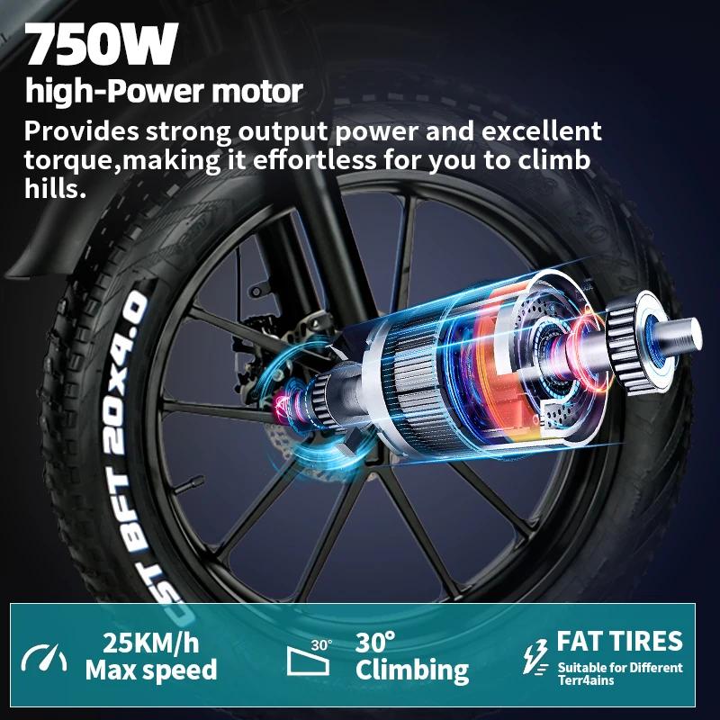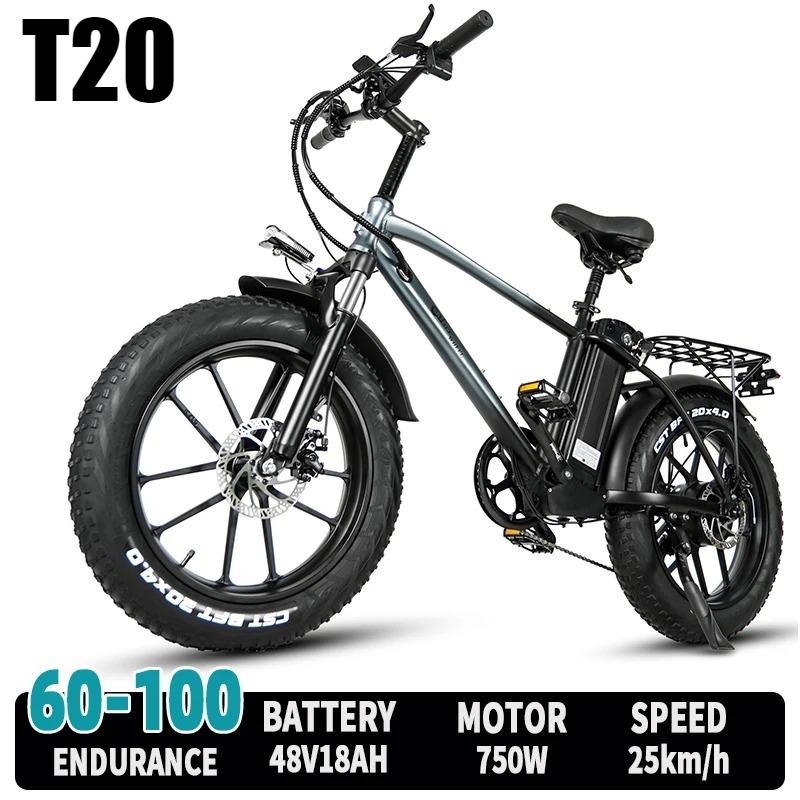 Сертифицированный ЕС T20 2025 новый электровелосипед 750 Вт мотор 48 В 18 Ач батарея Городской Комьютер Взрослый Электрический Велосипед 20-дюймовые Толстые Шины Электрический Велосипед