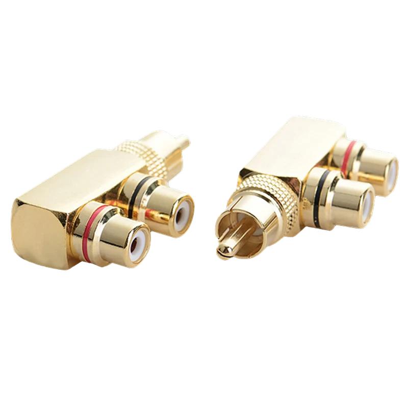 Позолоченный AV аудио разветвитель штекер RCA адаптер 1 штекер на 2 гнезда RCa F разъем