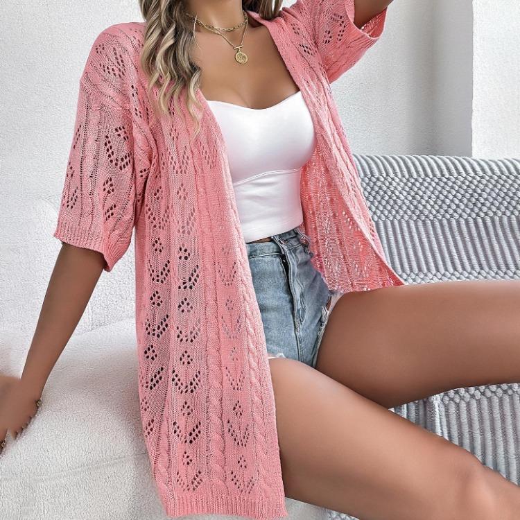 Женский кардиган с V-образным вырезом, однотонный, вязаный, с рукавом три четверти, уличный топ для леди
