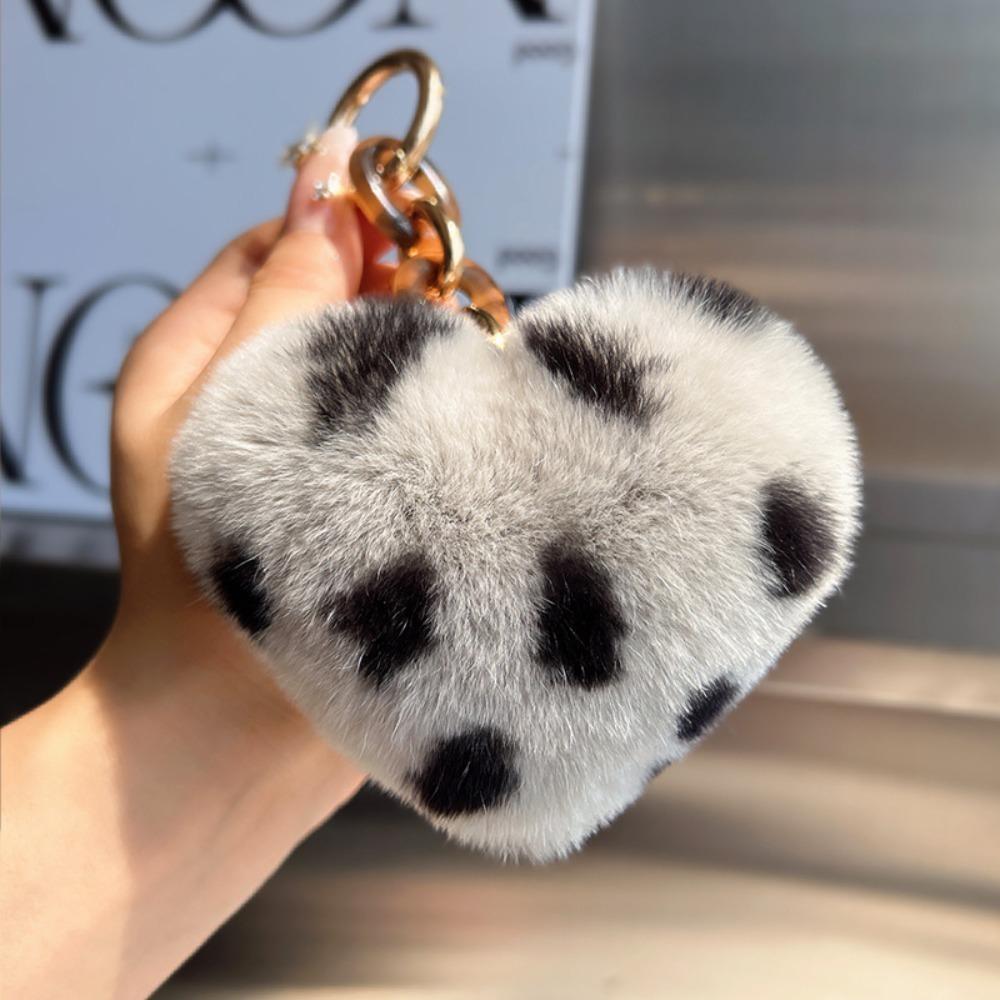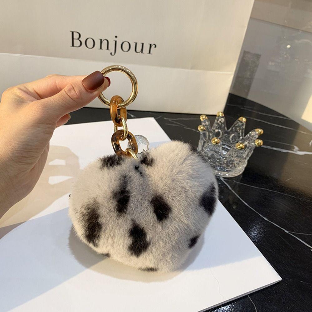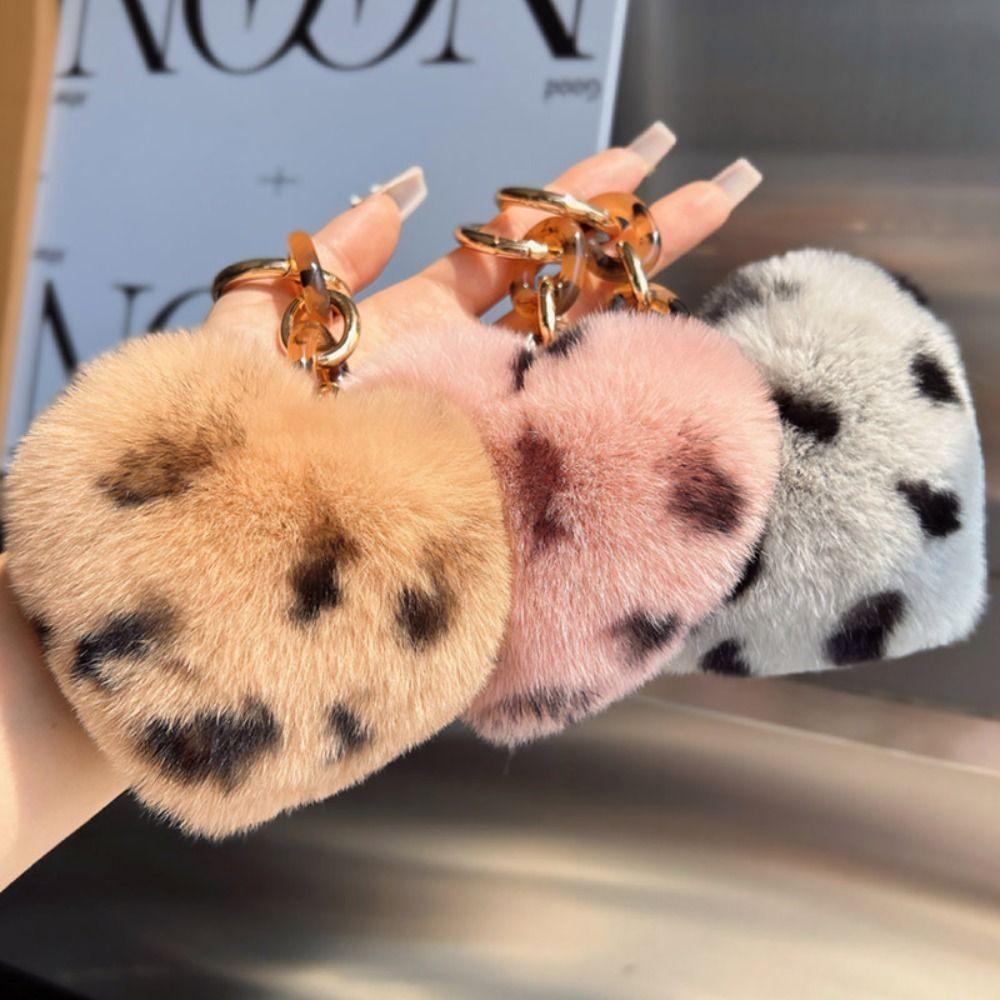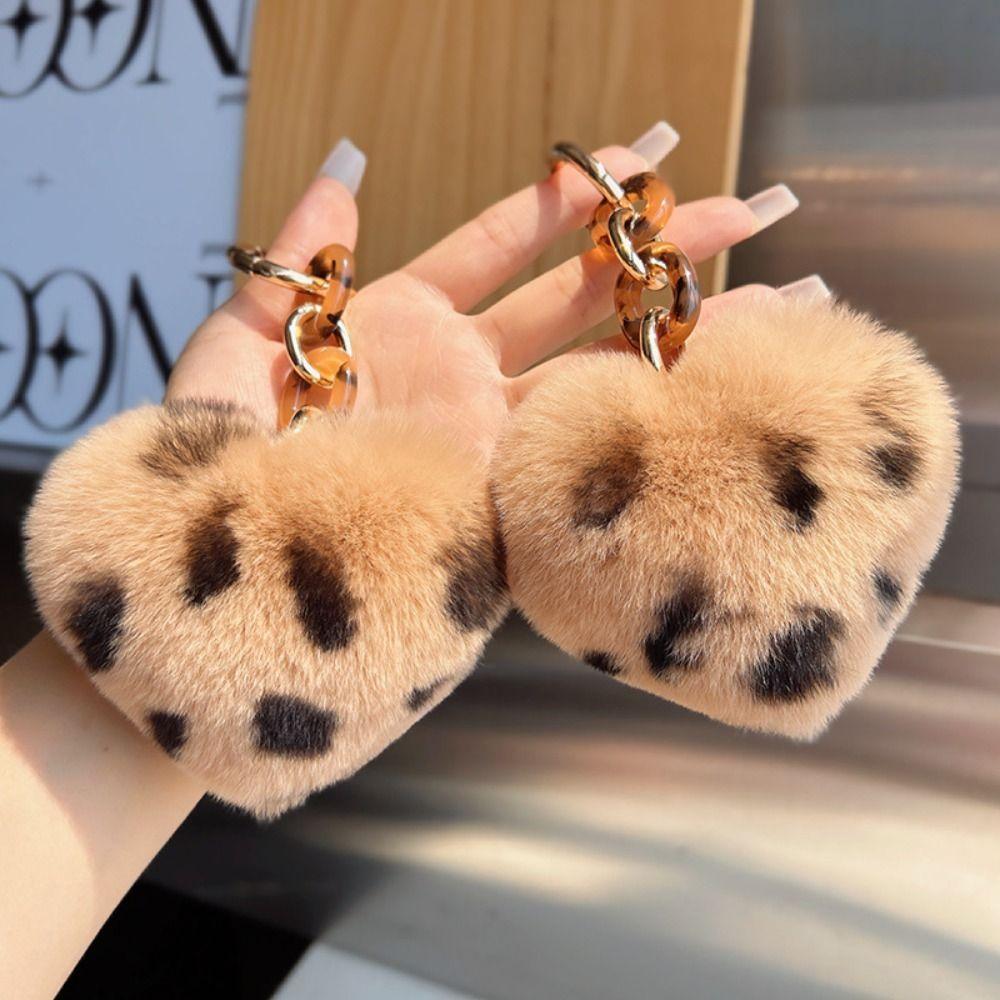 Fluffy Hairball Key Rings Plush Leopard Pompom High-End Love Car Key Chain Gift