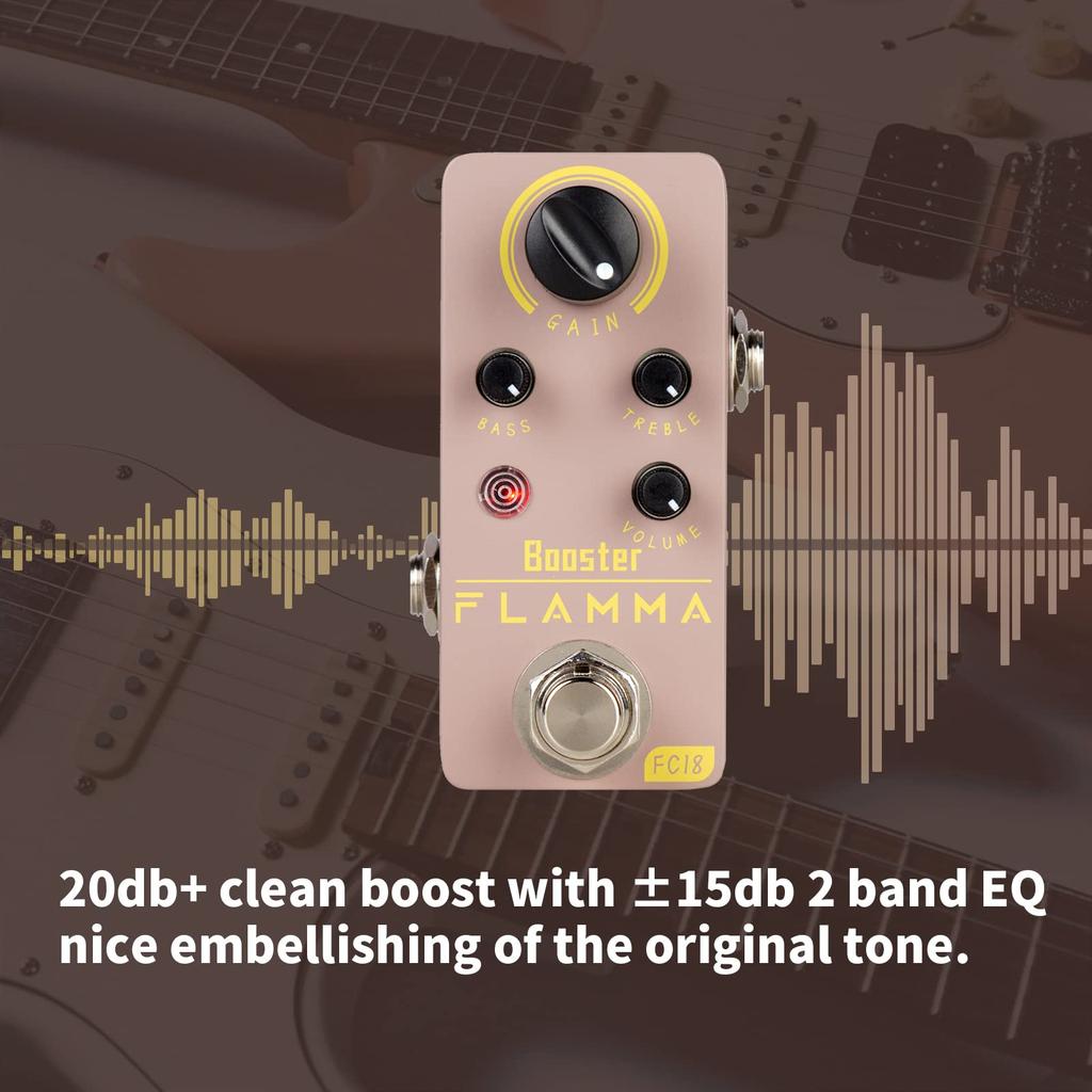 FLAMMA FC18 Booster Pedal for Electric Guitar and Bass Compact Size True Bypass