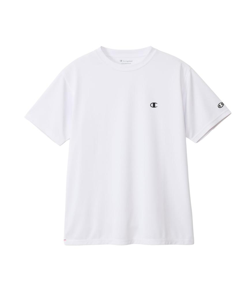 Champion Футболка с коротким рукавом UV Crew Quick One Point Rubber SHORT SLEEVE BASIC SPORTS Белая футболка, Защита, 100% полиэстер, Горловина, Антибактериальная,
