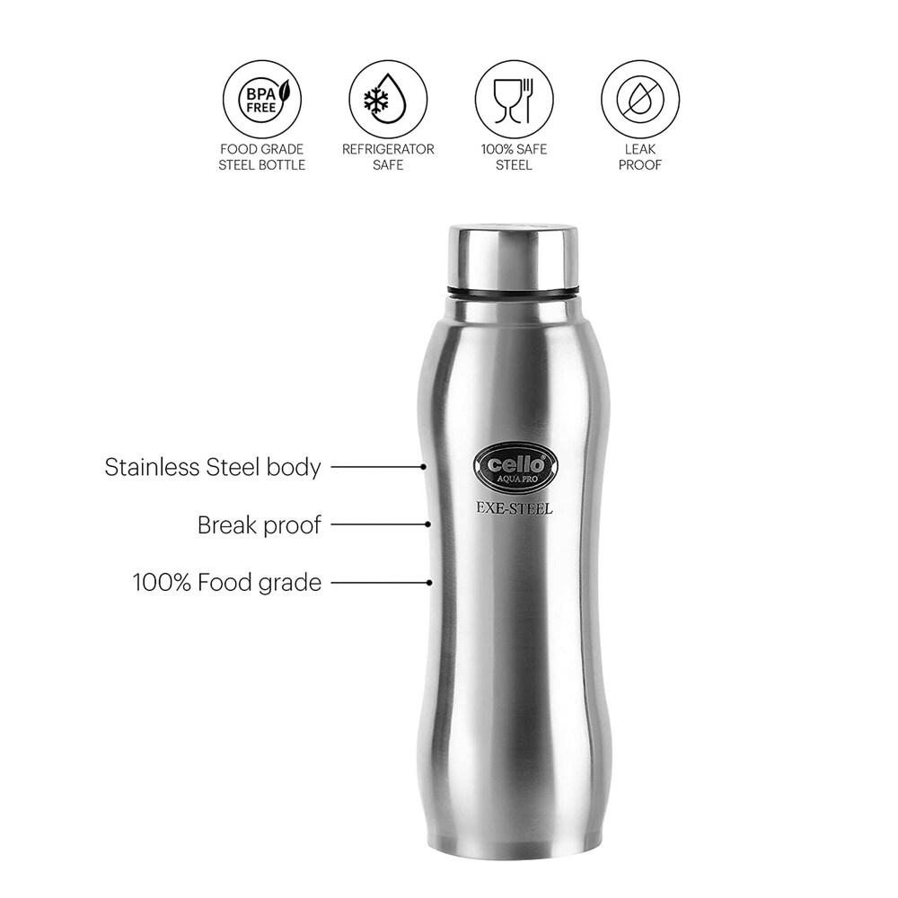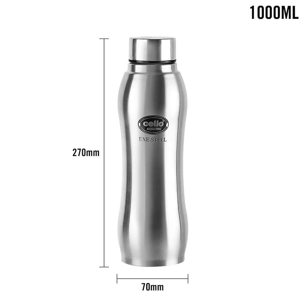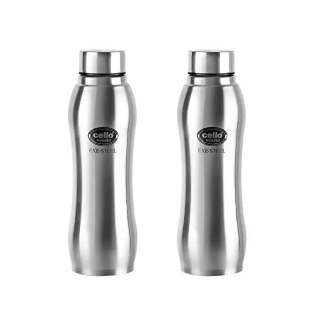 CELLO Набор из 2 бутылок для воды из нержавеющей стали | Бутылки объемом 1000 мл, герметичные, для спортзала, офиса, путешествий | Герметичные, пищевой класс, серебристые