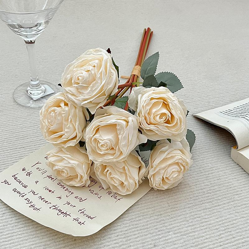43СМ 7-компонентный букет из искусственных роз с подпаленными краями, перевязанный, высококлассное домашнее мягкое украшение, цветочные орнаменты