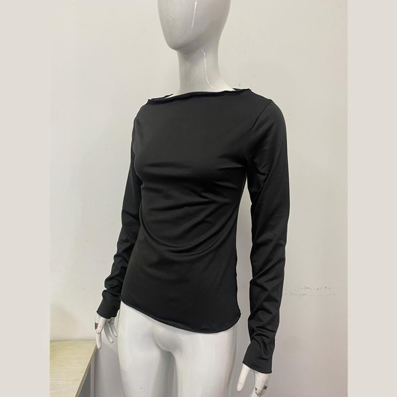 Европейская и американская весенне-осенняя мода, сексуальный базовый топ однотонной расцветки