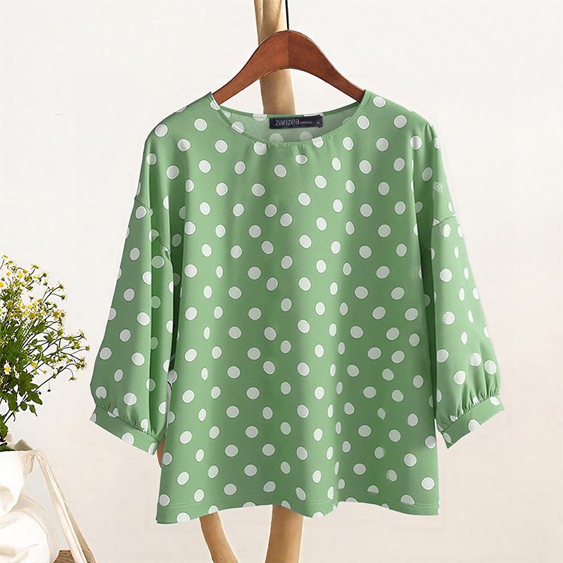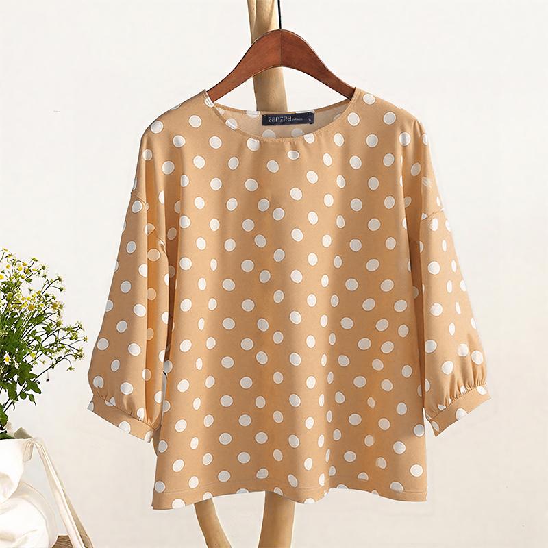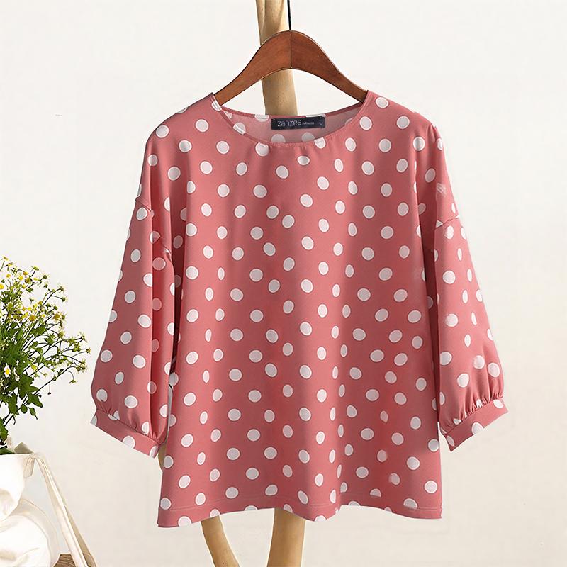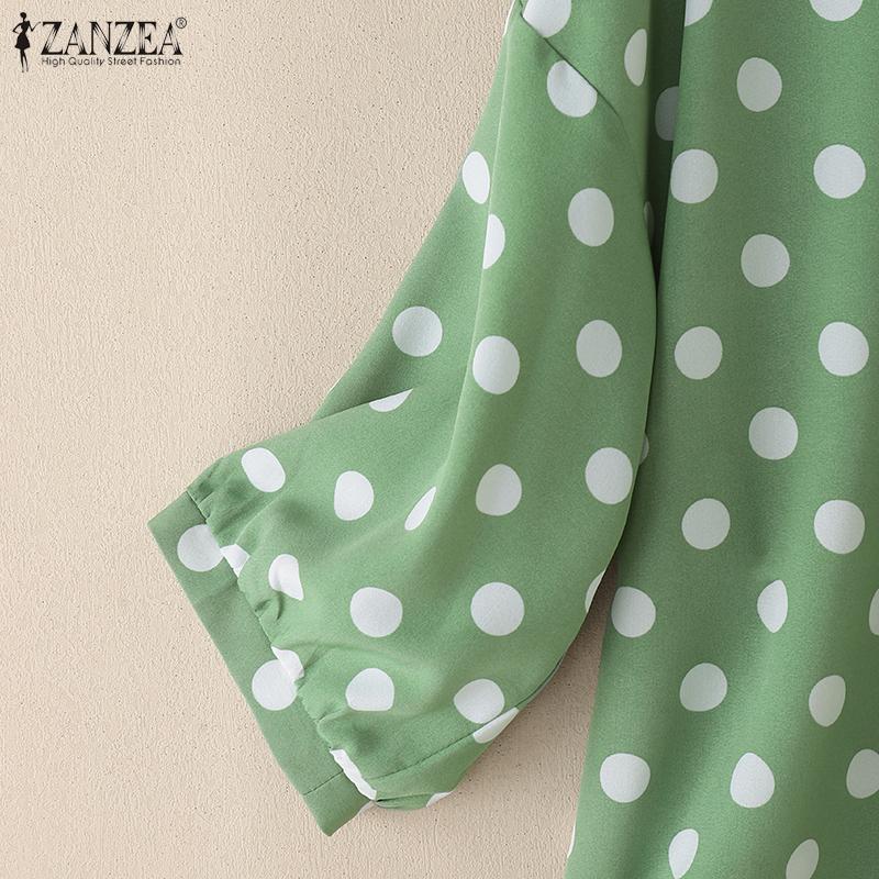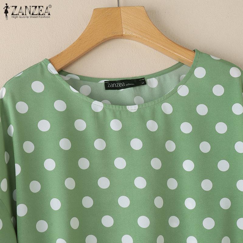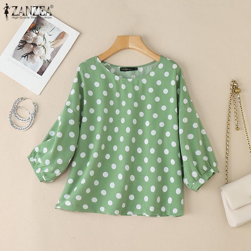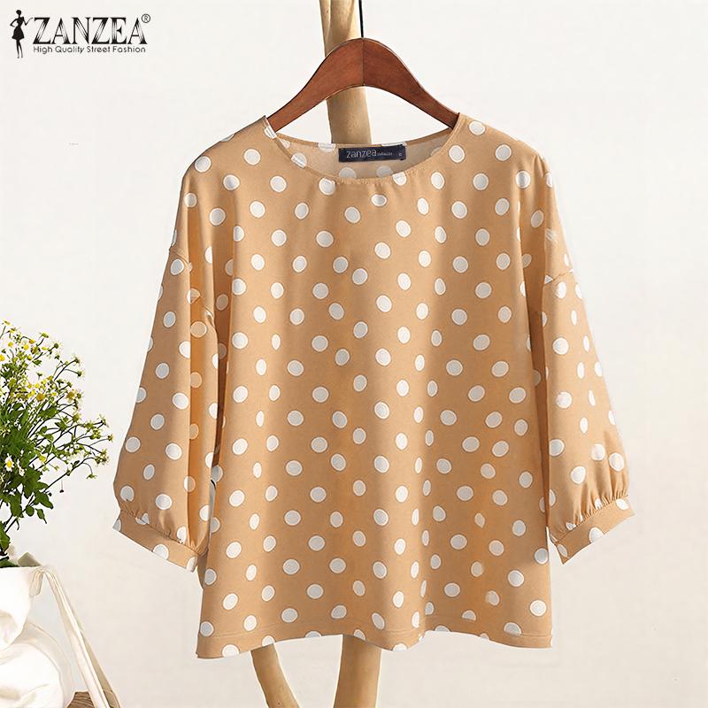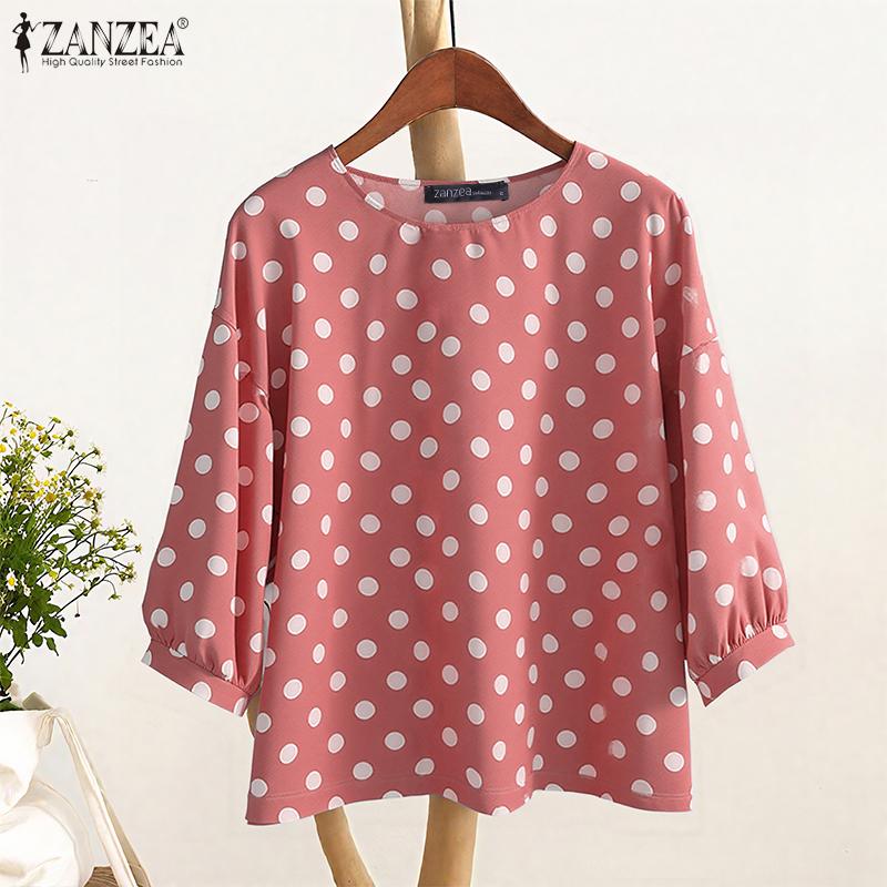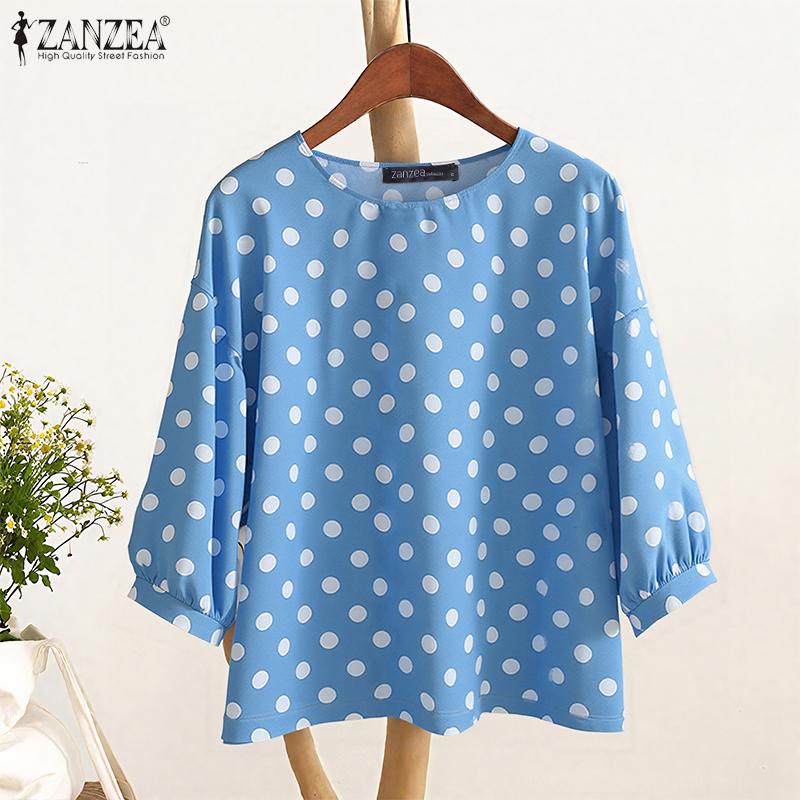 ZANZEA Женская повседневная блузка с круглым вырезом, рукавом 3/4 и свободным кроем, с принтом в горошек