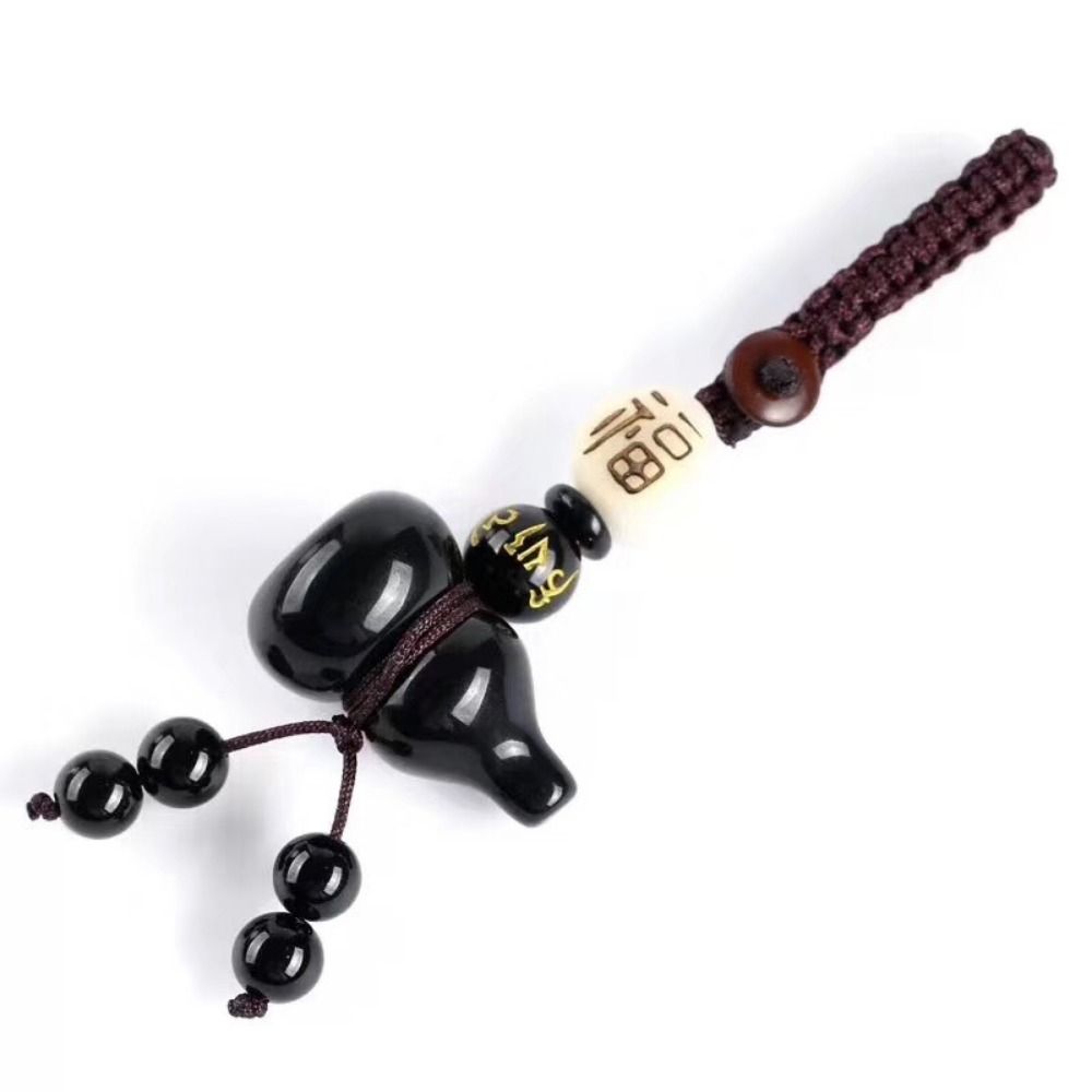 with Black Red Beads Bag Charms Natural Obsidian Car Key Ring Gourd Pendant Keychain Small Gifts