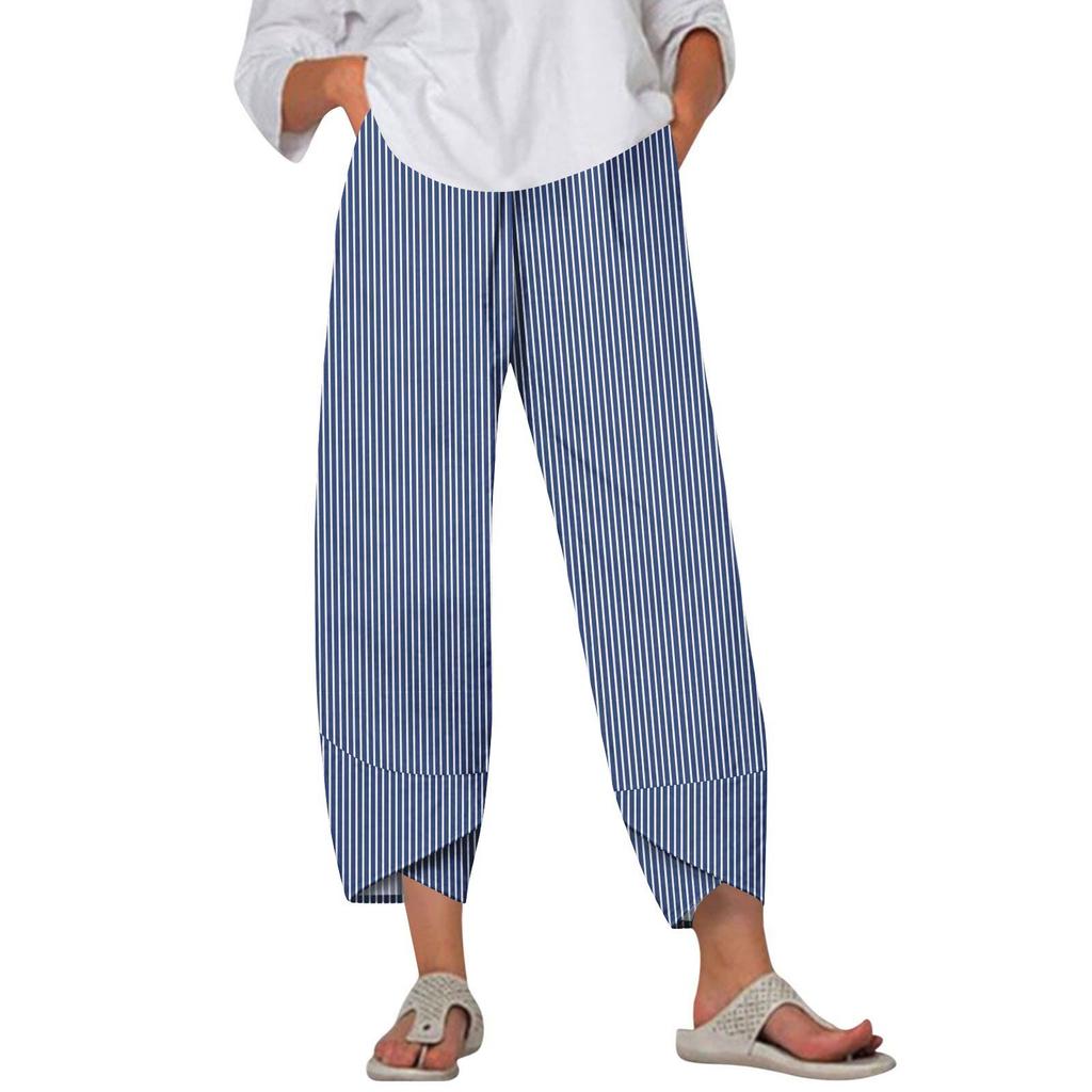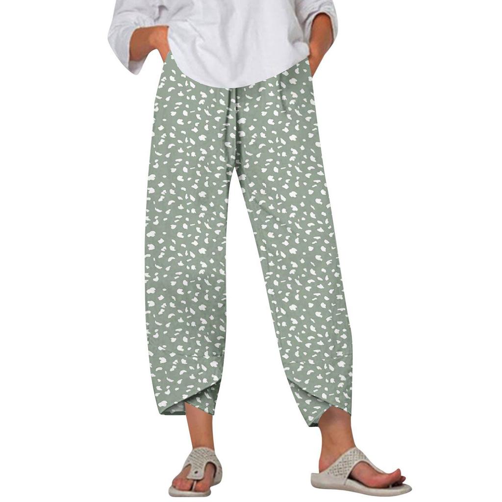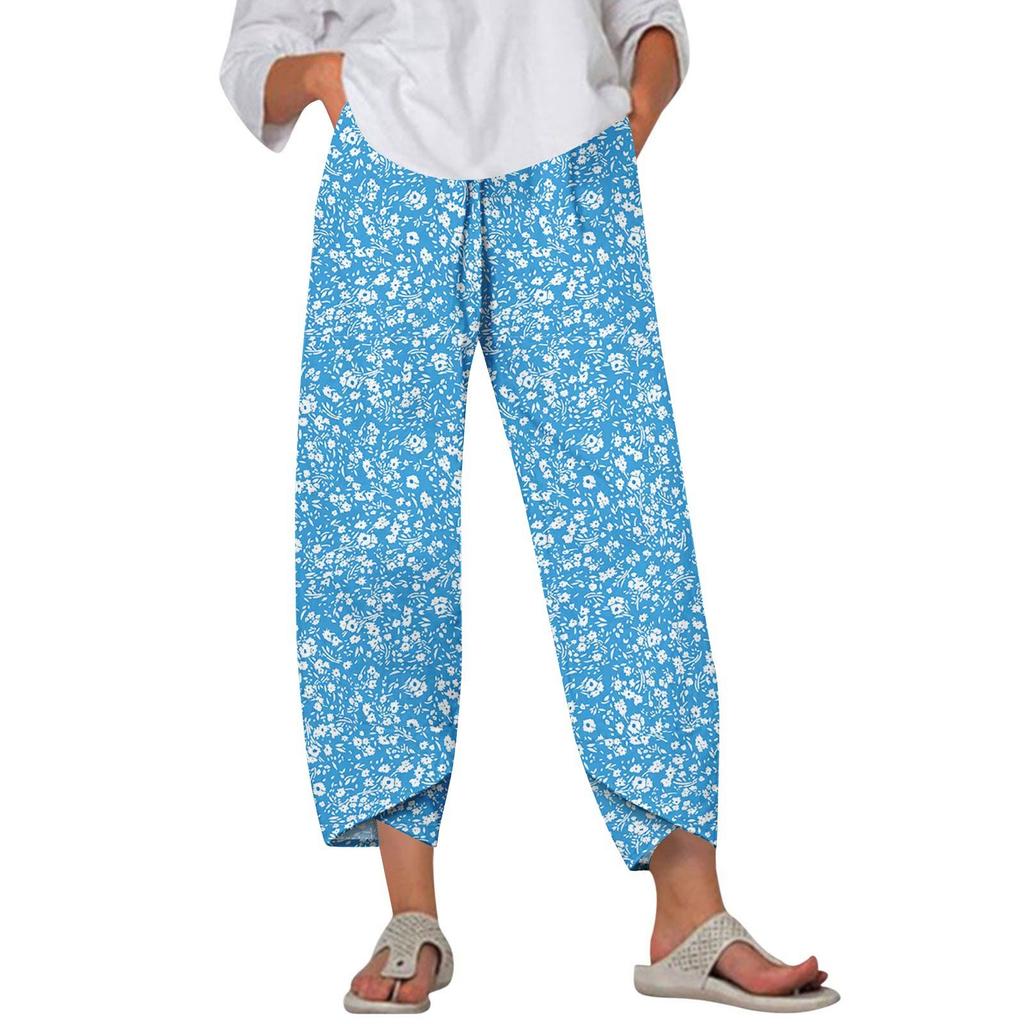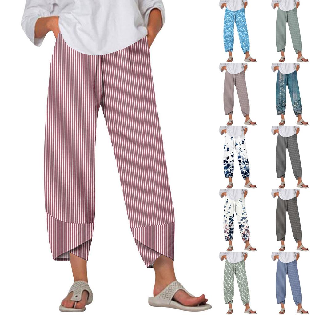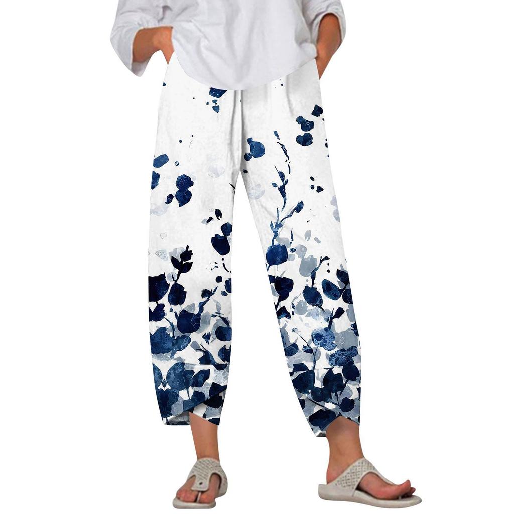 Брюки женские летние повседневные широкие брюки с эластичной резинкой на талии и принтом с карманами