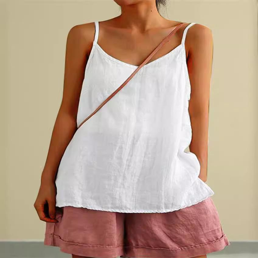 Женский летний топ из хлопка и льна на тонких бретелях, топ с v-образным вырезом без рукавов, свободный женский жилет, сексуальная блузка на бретельках, верхняя женская одежда