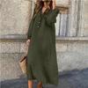 Модное хлопковое и пеньковое длинное повседневное однотонное платье с V-образным вырезом, элегантный халат с полуоткрытой передней частью и длинными рукавами для женщин