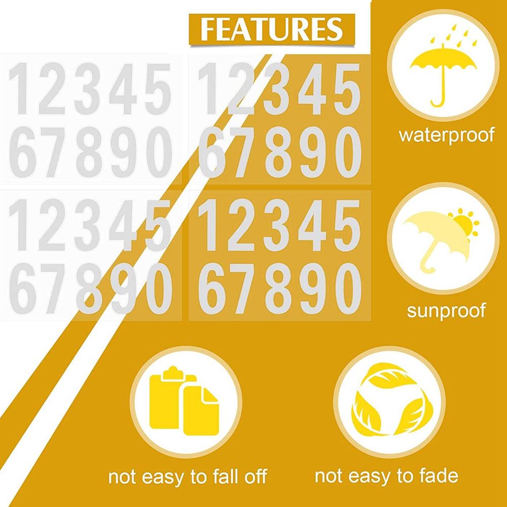 Номера 40 шт: пакет поставляется с 40 штуками отражающих номеров почтовых ящиков, от 0 до 9, каждый содержит 4 штуки, высотой 1/2/3/4 дюйма; Их достаточно, чтобы вы могли наклеить их на свой почтовый ящик или дверь.