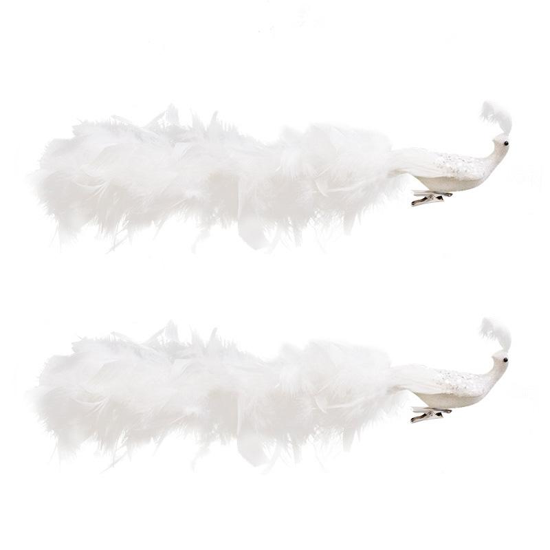 1/2 шт. Подвесной кулон Сверкающий белый павлин Дерево Декор с длинным хвостом 40 см Рождественское украшение Верхушки для рождественской елки На клипсах
