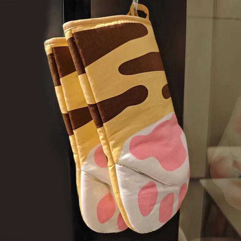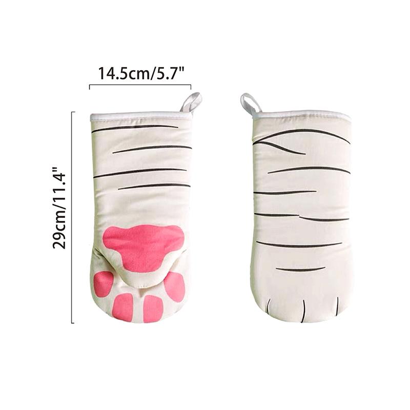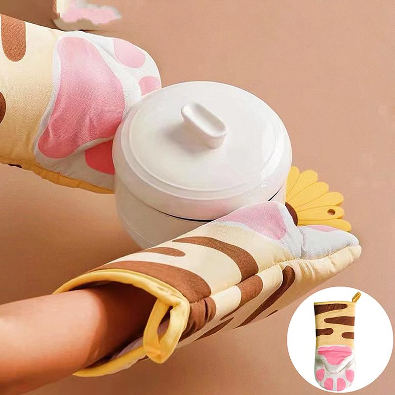 1Pc Cartoon Cat Paw Oven Mitt Microwave Oven Gloves Long Cotton Insulation Anti-Scald Non-Slip Baking Glove Microwave Kitchen