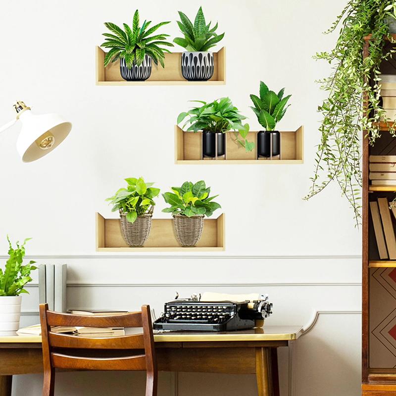 Имитация зеленых растений в горшках, оклеивание стен гостиной, спальни, украшение дома, оклеивание стен