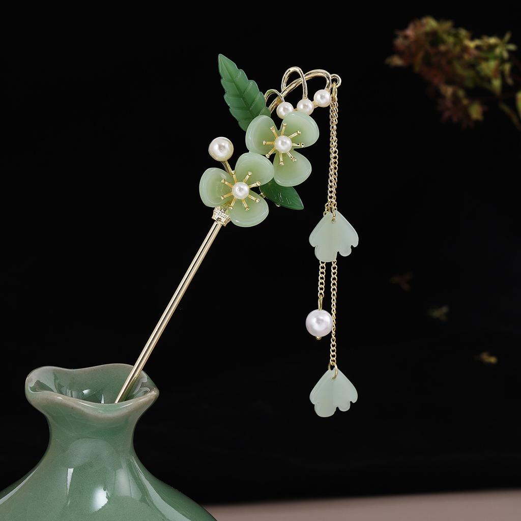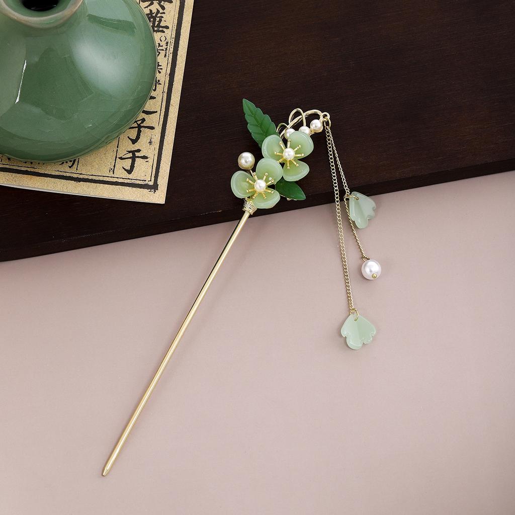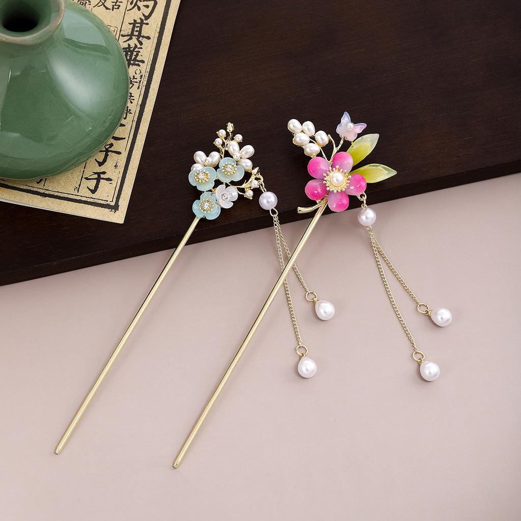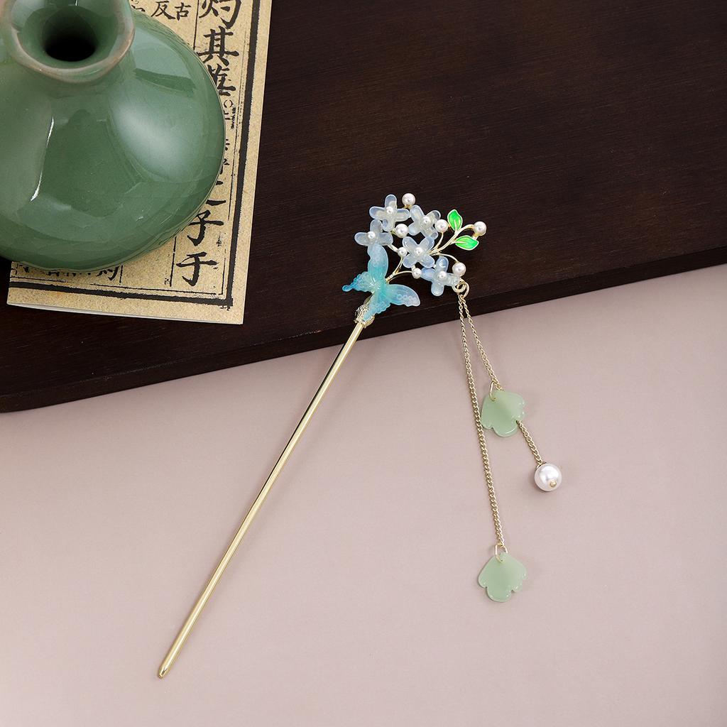 Новая китайская кисточка-листок, кисточка, заколка для волос в древнем стиле, простая заколка для волос в придворном стиле, цветок, бабочка, жемчуг, заколка для волос для ханфу, женская