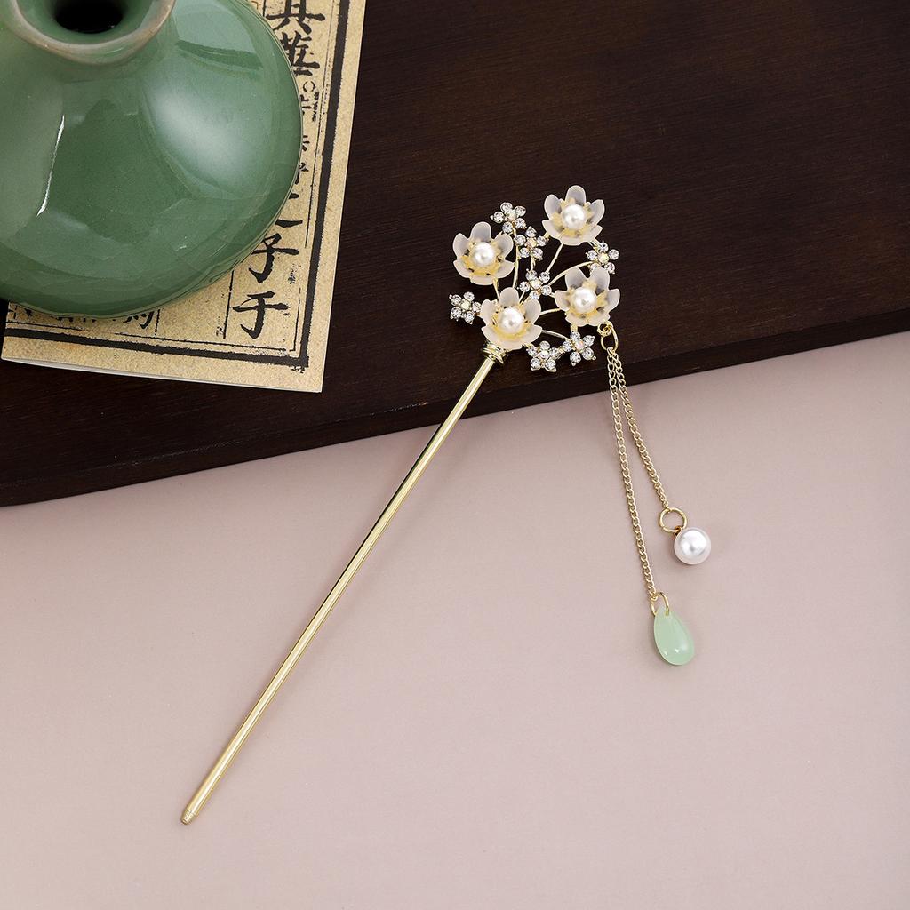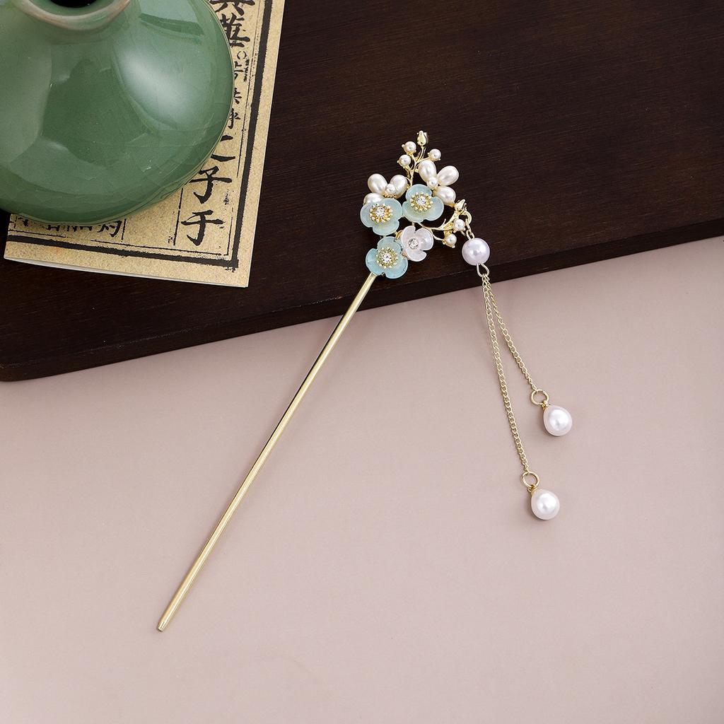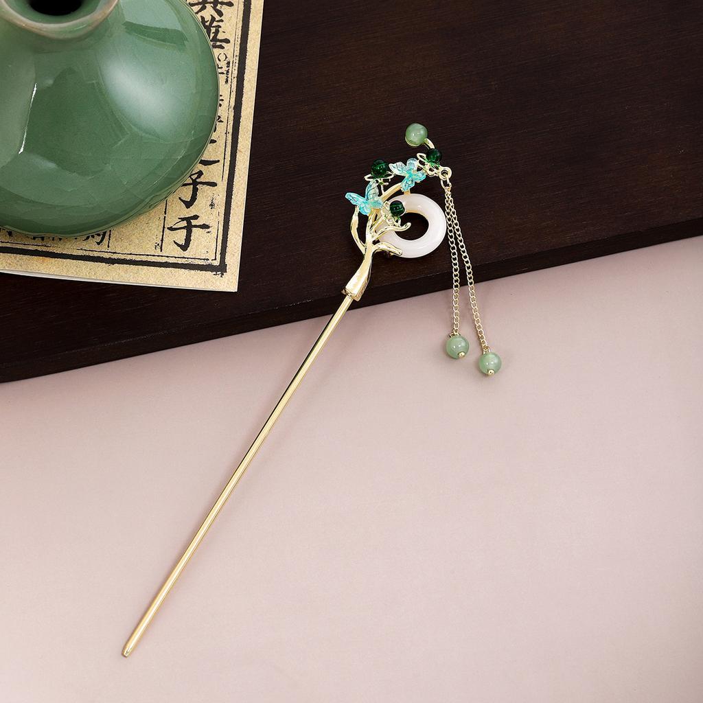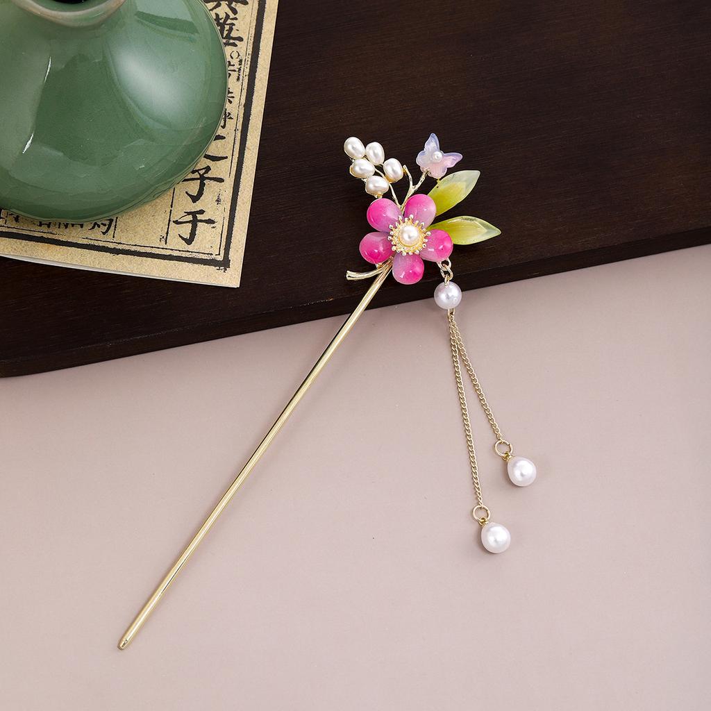 Новая китайская кисточка-листок, кисточка, заколка для волос в древнем стиле, простая заколка для волос в придворном стиле, цветок, бабочка, жемчуг, заколка для волос для ханфу, женская