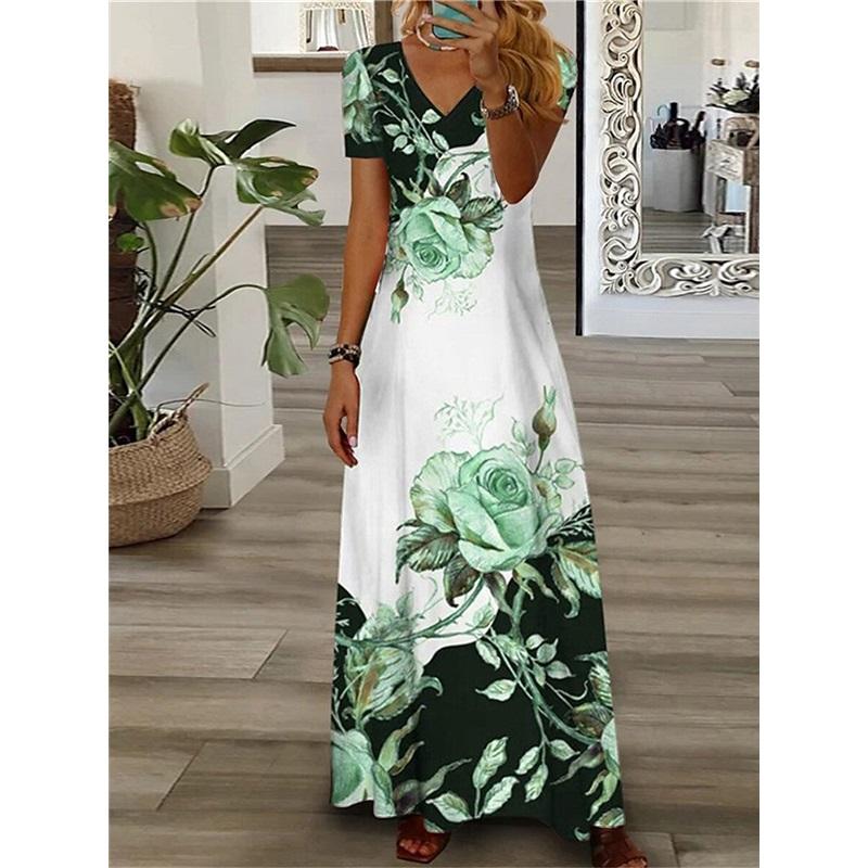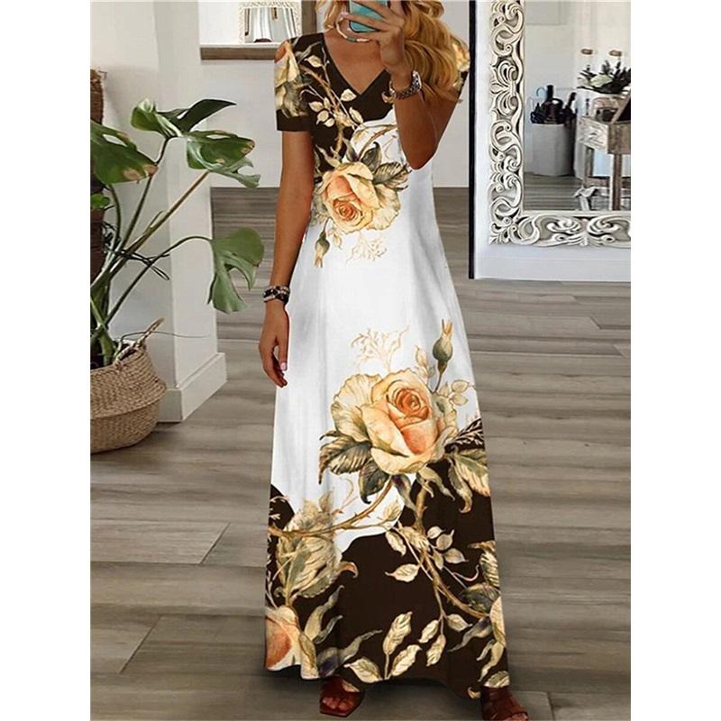 Женское летнее макси-платье, повседневное, с V-образным вырезом, с коротким рукавом, в стиле бохо, с принтом, пэчворк, облегающее, для вечеринки