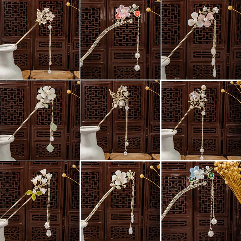 Национальный стиль Жемчужный цветок Кисточка Кисточка Кисточка Подвеска Аксессуар для ханьфу Заколка для волос Женская Новая китайская Древний стиль Заколка для волос с колокольчиком и орхидеей