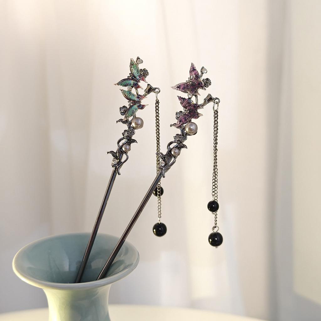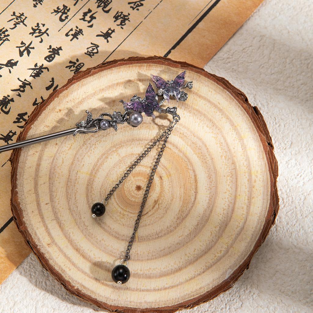 Новая китайская мечта Фиолетовая бабочка Кисточка Заколка для волос Национальный тренд Древний стиль Холодный ветер Нишевая Заколка для волос Пучок Шаг Рокер Женская