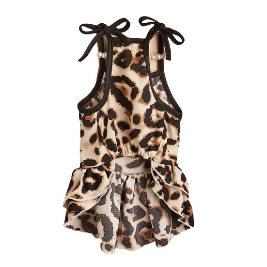 Юбка на подтяжках Двухслойная Рюши по краю Леопардовый принт Летняя Одежда для Китти Наряды для Собак для Улицы