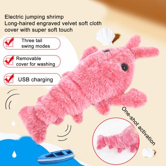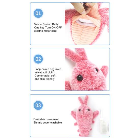 Игрушка для кошки Милая форма Мягкая Устойчивая к укусам Удобная Защищенная от царапин Очистка зубов Тренировка Электрическая Прыгающая Кошка Игрушка Креветка для Домашней Игры