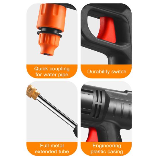 Наслаждайтесь беспроводным удобством и мощным напором воды, обеспечивающим эффективную мойку автомобиля и дома без ограничений, связанных с электрическими розетками, что делает уборку на открытом воздухе легкой.