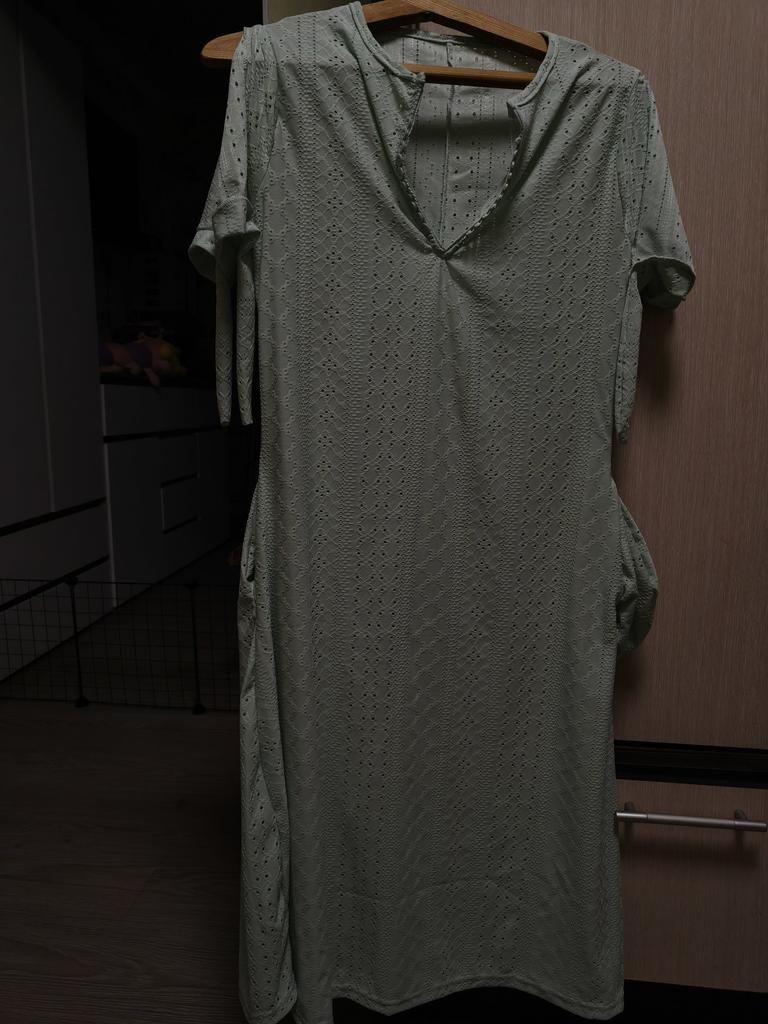 Платье ужасное. Выкинула деньги зря. Маломерит. На российский 48-50 в обтяжку. Это пол беды. Само платье отвратительное. Матерьял в дырочку, еще и просвечивается. Крой ужасный. Швы кривые, в гармошку. Эти карманы по бокам ни к селу ни к городу, ещё больше испортили платье, которое и так отвратительное. Кошмар а не платье.И не вернёшь эту гадость. 💩