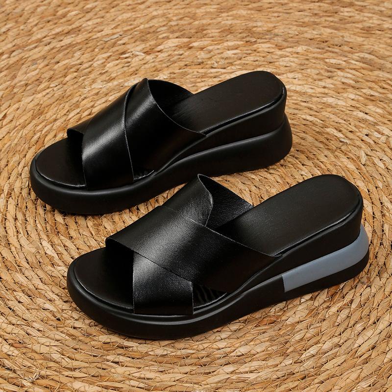 Босоножки Muffin на толстой подошве с танкеткой, женская летняя верхняя одежда, пустые крестики, однотонные, классные тапочки, большие размеры, босоножки на высоком каблуке для женщин