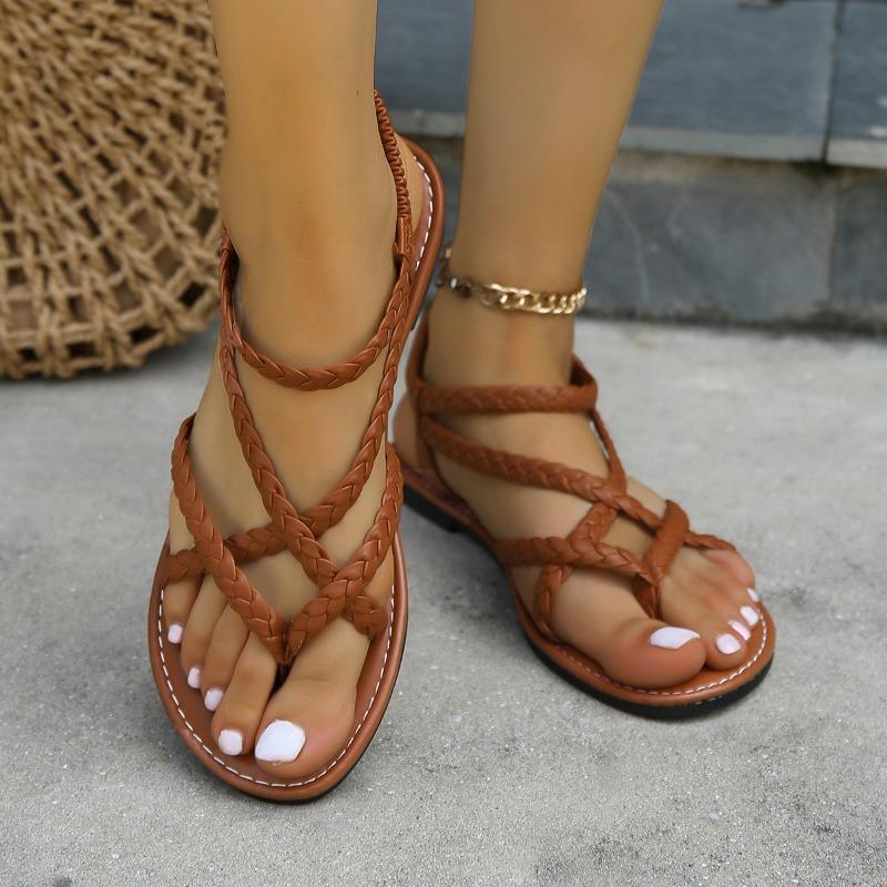 Пляжные сандалии Clip Toe Woven Flat, повседневные сандалии больших размеров, тапочки, женская обувь