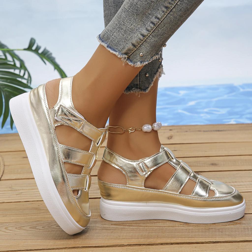 Летние женские босоножки на танкетке, уличная римская обувь на платформе с закрытым носком для женщин, новые повседневные женские сандалии-гладиаторы больших размеров