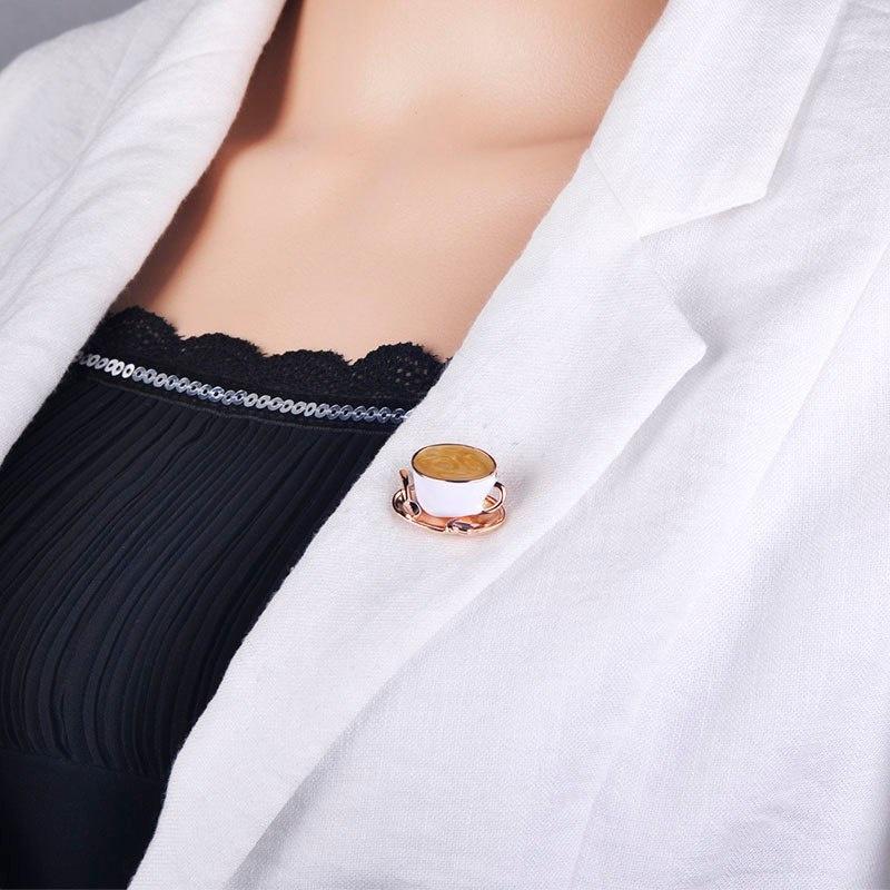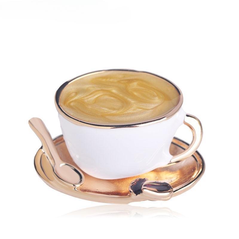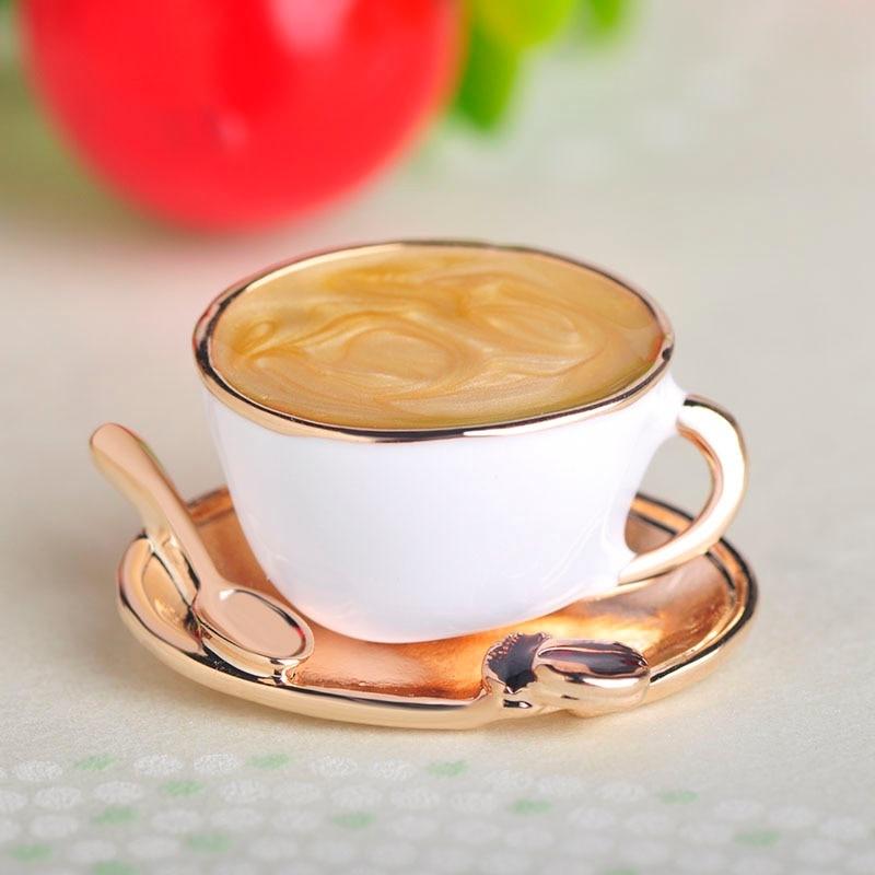 Милая брошь в виде кофейной чашки с ложкой и диском, ювелирная булавка, мужская, женская, значок для одежды AVE