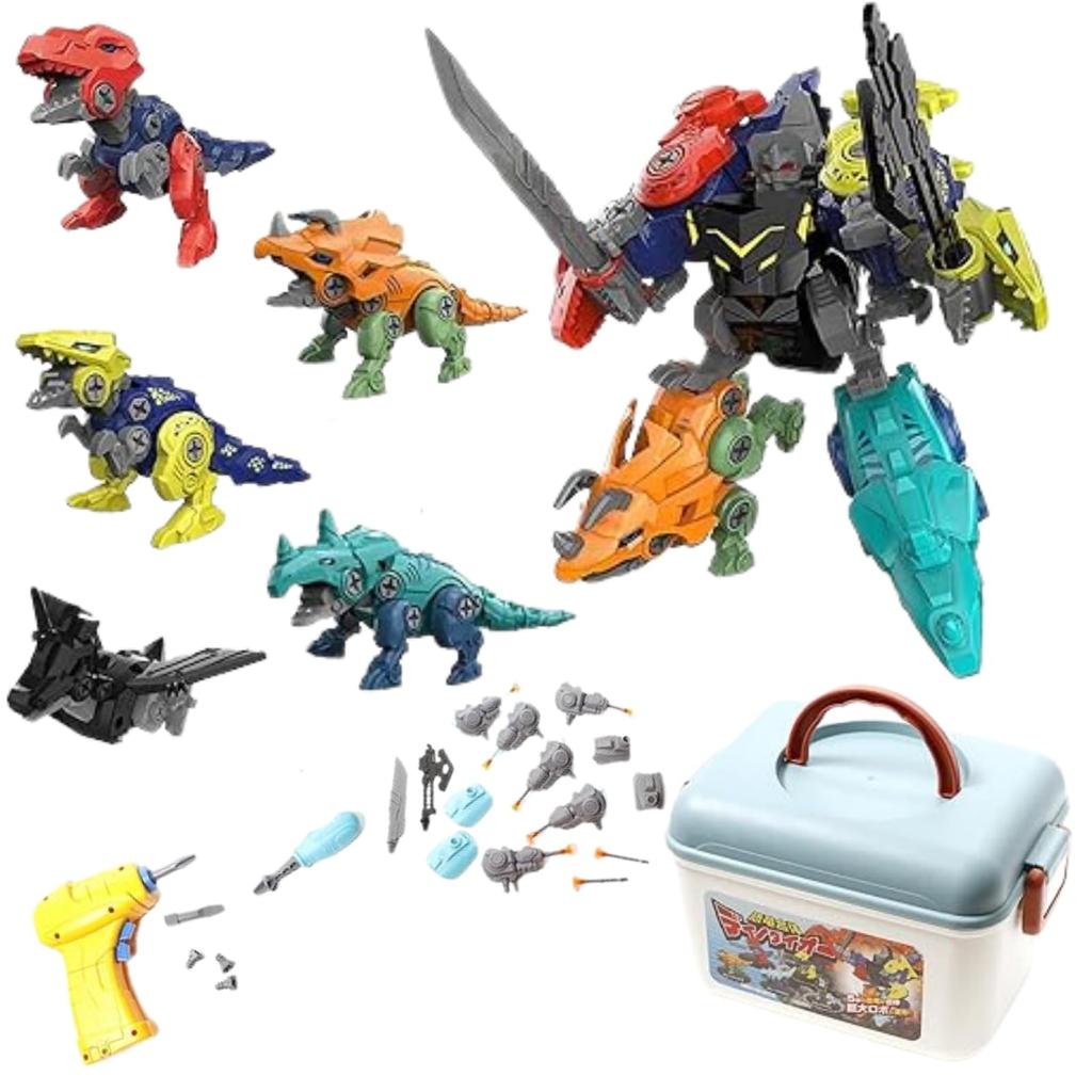 5 в 1 Робот-динозавр Сделай сам Игрушка для сборки динозавра Динозавр-плотник Игрушка для ролевых игр 3D-пазл — это развивающая игрушка, которая стимулирует мозг, тренируя кончики пальцев, и способствует росту и развитию детей.. И вы можете максимально развить творческие способности вашего ребенка, весело проводя время.. В комплекте 5 видов динозавров, которых можно собирать и разбирать. Вы можете объединить их, чтобы создать одного большого робота, или собрать их в 5 отдельных динозавров.. Дети будут в восторге от этого суперробота. Динозавр может двигать суставами головы, рук и ног. Вы также можете играть, стреляя стрелами с присосками, прикрепив входящее в комплект оружие-пусковое устройство! ■ Безопасные и надежные материалы Также отличный подарок! На дни рождения, День защиты детей, Рождество и вечеринки. Изготовлен из высококачественного АБС-материала, экологичен и обладает отличной ударопрочностью. По сравнению с изделиями из других материалов, поверхность гладкая, без заусенцев, и ощущается безопасность.. Это идеальная игрушка для детей! ■Удобное хранение Этот продукт также поставляется с легким ящиком для хранения, и различные детали можно хранить и переносить в ящике для хранения.