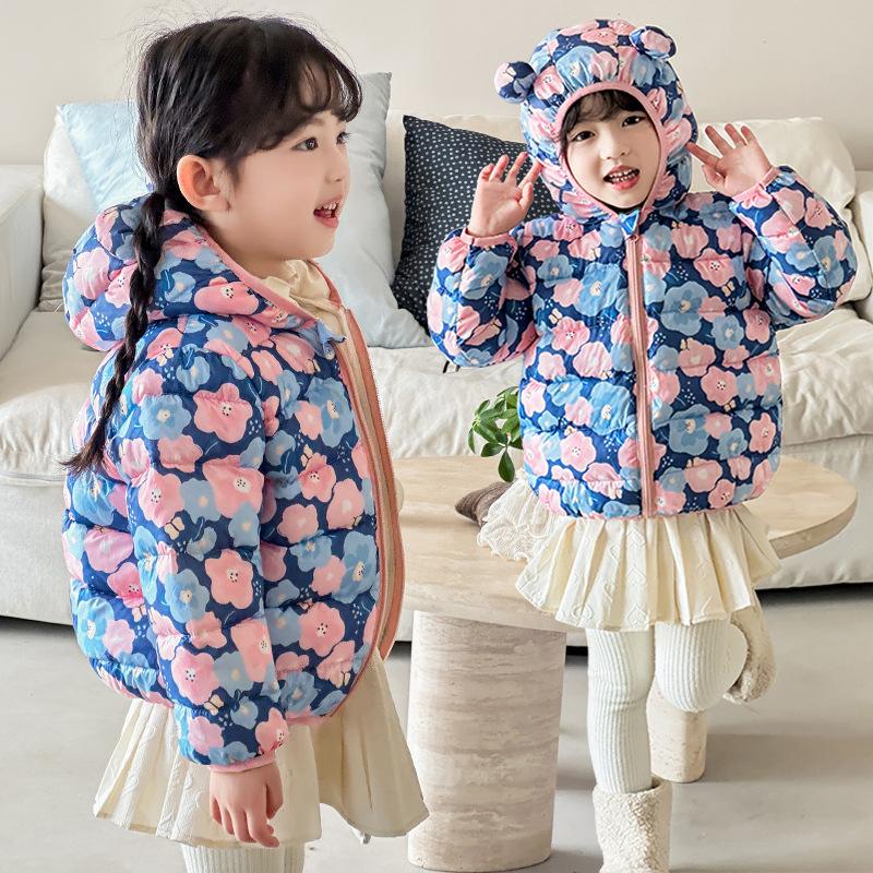 Осень милые пальто с цветочным принтом теплая детская одежда на хлопковой подкладке модный стиль синий зимний укороченный пуховик для маленькой девочки — купить товар онлайн с бесплатной доставкой по всему миру!