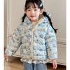 Осень милые пальто с цветочным принтом теплая детская одежда на хлопковой подкладке модный стиль синий зимний укороченный пуховик для маленькой девочки