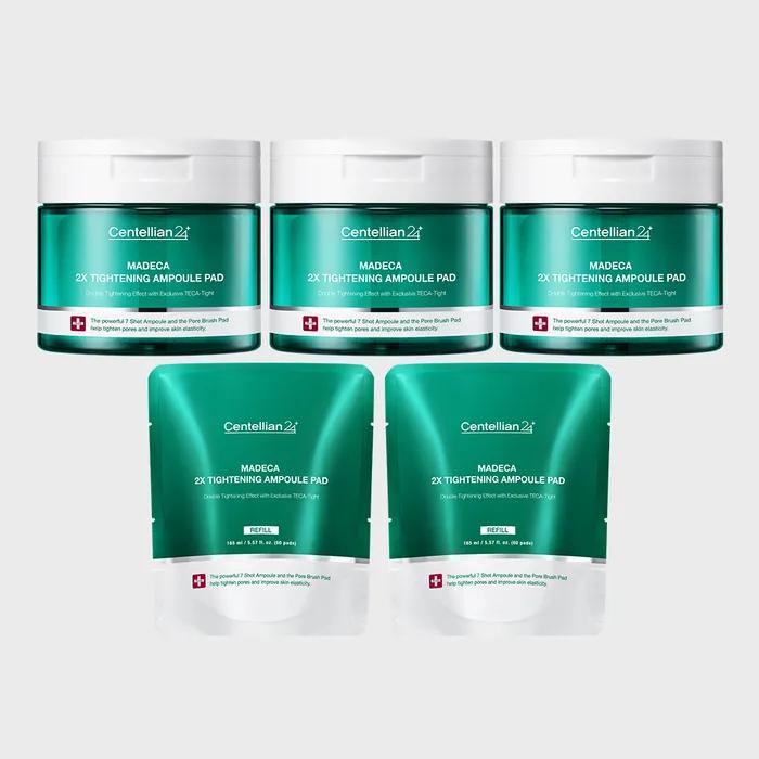 CENTELLIAN24 Madeca Двойные подтягивающие ампульные пэды 3+Рефилл 60 листов 2 Поры Эластичность кожи Отбеливание Уход за морщинами Сияние Лифтинг