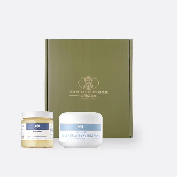 Ингредиенты: 01. Крем календулы от кашля: Очищенная вода, глицерин, масло ши*, масло семян подсолнечника*, кокосовое масло*, масло авокадо*, масло ореха макадамия*, масло семян жожоба*, цетеариловый спирт, цетиловый спирт, цетеарилсульфат натрия, бетаин, масло сладкого миндаля*, цетилпальмитат, левулиновая кислота, п-анисовая кислота, левулинат натрия, этанол, отдушка, экстракт цветков календулы* (10 00 частей на миллион), порошок сока листьев алоэ вера*, экстракт корня окопника*, экстракт листьев шлемника байкальского*, экстракт корневища рода маточного молочка*, экстракт моркови*, экстракт листьев розмарина*, аскорбилпальмитат, летучие вещества элеми манильского, токоферол, сорбат калия, фитиновая кислота, бензоат натрия, кокоилглутамат динатрия, кокоилглутамат натрия, молочная кислота, масло лавандина 02. Catenvet Мультибальзам: Оливковое масло*, пчелиный воск, токоферол, масло семян подсолнечника* / *Маркировка органических ингредиентов