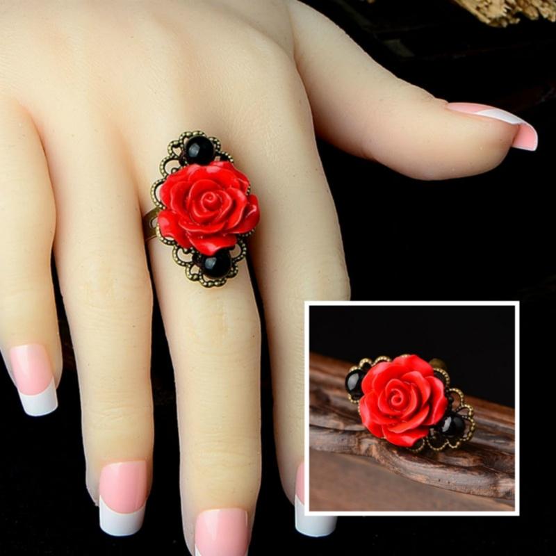 Регулируемые кольца в готическом стиле с черными бусинами и красной розой, цвет античной бронзы, женские национальные украшения AVE