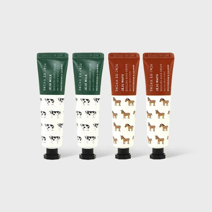Ингредиенты: [Jeju Mayu Healing Hand Cream] Очищенная вода, бутиленгликоль, цетеариловый спирт, этилгексилпальмитат, глицерин, гидрогенизированный полидецен, циклопентасилоксан, 1,2-гександиол, циклогексасилоксан, дикаприлилкарбонат, глицерилстеарат SE, стеарат ПЭГ-40, сорбитанстеарат, глицерилстеарат, диметикон, лошадиный жир (5000 частей на миллион), масло сладкого миндаля, стеарат ПЭГ-100, полиакрилат-13, этилгексилглицерин, каприлилгликоль, карбомер, трометамин, полиизобутен, масло бергамота, пантенол, экстракт зеленого чая, экстракт кожуры цитрусовых, экстракт ламинарии, экстракт меда, экстракт бамбука с острова Чеджу, морская вода, экстракт прополиса, масло мяты перечной, масло листьев розмарина, ксантановая камедь, масло кожуры лимона, динатриевая соль ЭДТА, полисорбат 20, изостеарат сорбитана, масло листьев дзельквы, гиалуронат натрия, феноксиэтанол [Крем для рук Jeju Milk Healing] очищенная вода, бутиленгликоль, цетеариловый спирт, этилгексилпальмитат, глицерин, гидрогенизированный полидецен, циклопентасилоксан, 1,2-гександиол, циклогексасилоксан, дикаприлилкарбонат, глицерилстеарат SE, стеарат ПЭГ-40, масло сладкого миндаля, стеарат сорбитана, экстракт молока (9700 частей на миллион), глицерил стеарат, диметикон, стеарат ПЭГ-100, полиакрилат-13, каприлилгликоль, этилгексилглицерин, карбомер, трометамин, полиизобутен, пантенол, экстракт листьев камелии китайской, экстракт кожуры мандарина, экстракт ламинарии, экстракт меда, экстракт бамбука с острова Чеджу, морская вода, масло бергамота, масло кожуры апельсина, масло лавандина, масло апельсина сладкого, ксантановая камедь, масло цветков душистой герани, масло кожуры грейпфрута, динатрий ЭДТА, полисорбат 20, масло цветков иланг-иланга, масло кожуры филиппинского апельсина, изостеарат сорбитана, масло листьев мяты индийской, масло коры цейлонской корицы, гиалуронат натрия