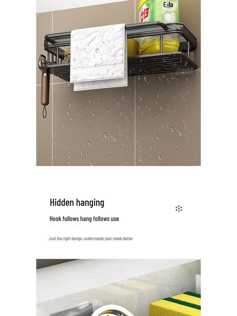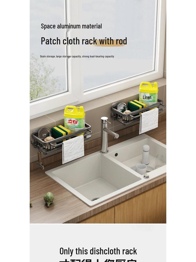 Настенная полка для кухонных полотенец и приправ - Без сверления, Многофункциональный органайзер для раковины