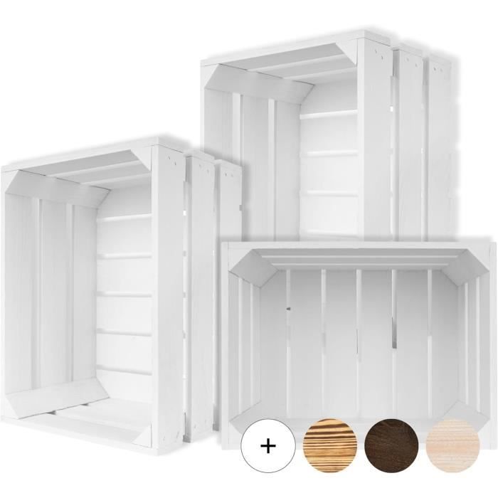Creative Deco Lot de 3 Caisse en Bois Blanc | 40 x 30 x 23 cm | Caisse Rangement Bois | Caisse en Bois Rangement Vintage
