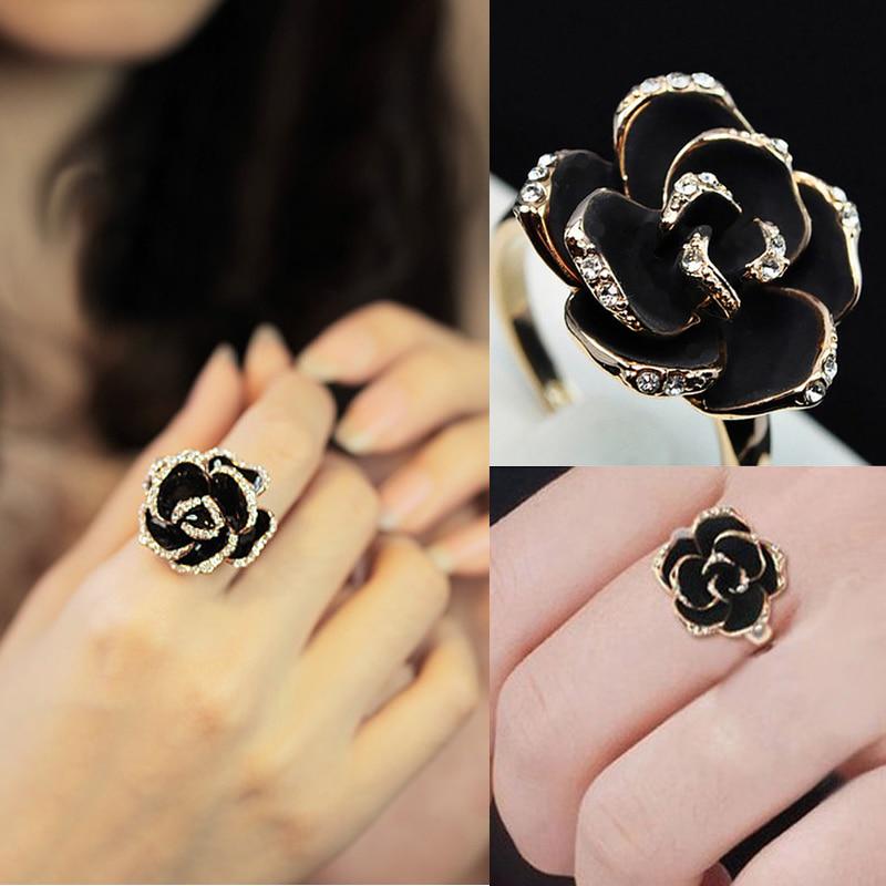 Женское модное кольцо с черной розой, сплав, имитация бриллианта AVE