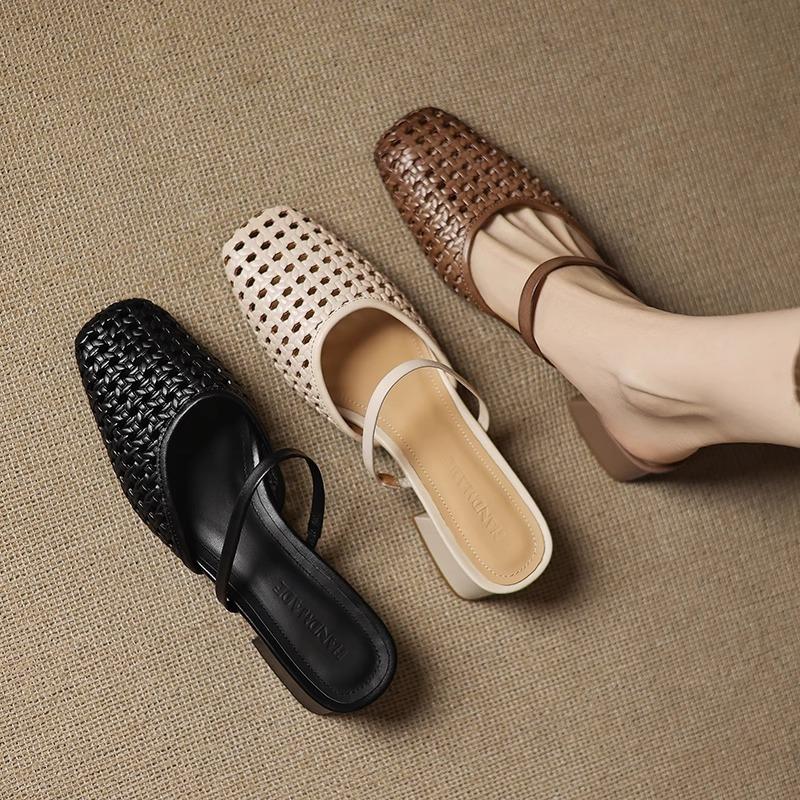 Женская обувь с квадратным носком, полушлепанцы с откидным верхом, на толстом каблуке, в ретро-стиле, плетеные, ажурные сандалии — купить товар онлайн с бесплатной доставкой по всему миру!