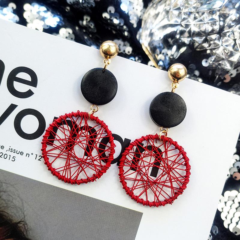 Бохо Геометрические Круглые Длинные Серьги для Женщин Винтажные Деревянные Плетеные из Соломы Ротанговые Серьги-Капли AVE