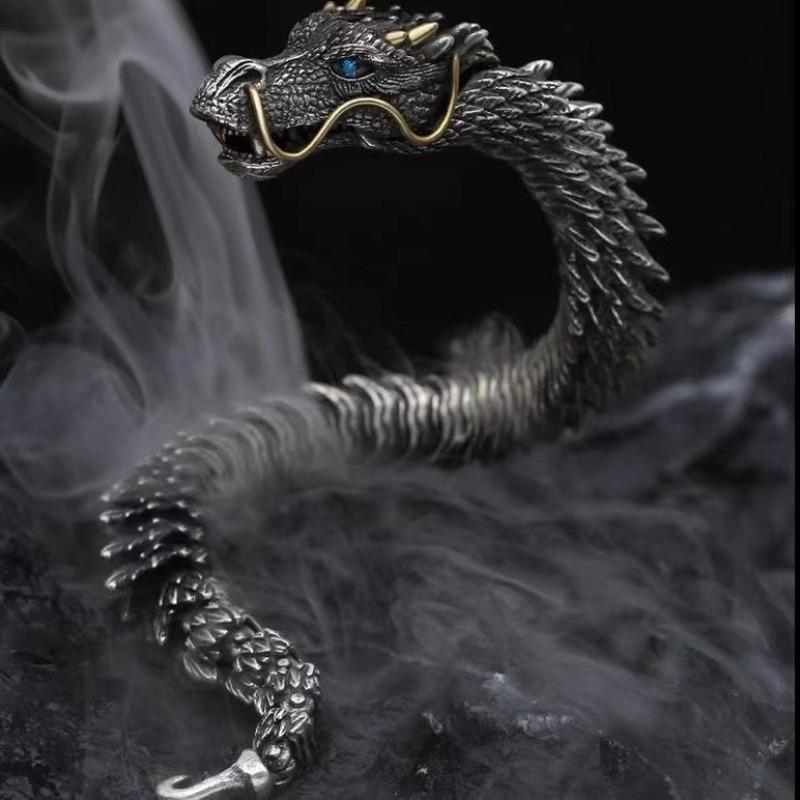 Ретро Серебряные Свирепые Драконы Браслеты Викинг Властный Черный Пистолет Дракон Мужской Браслет Хип-Хоп Рок Ювелирные Изделия Браслет AVE