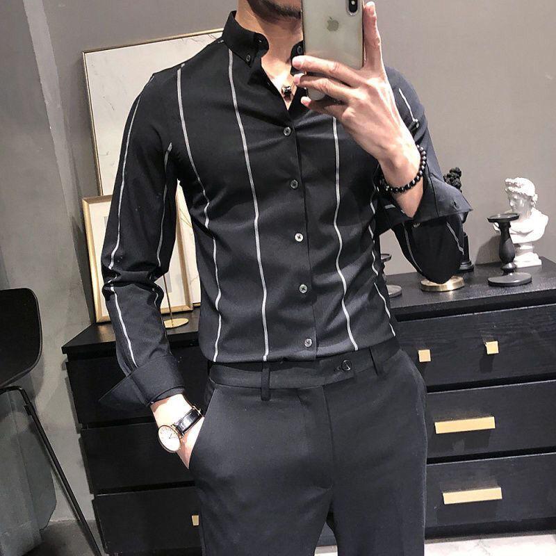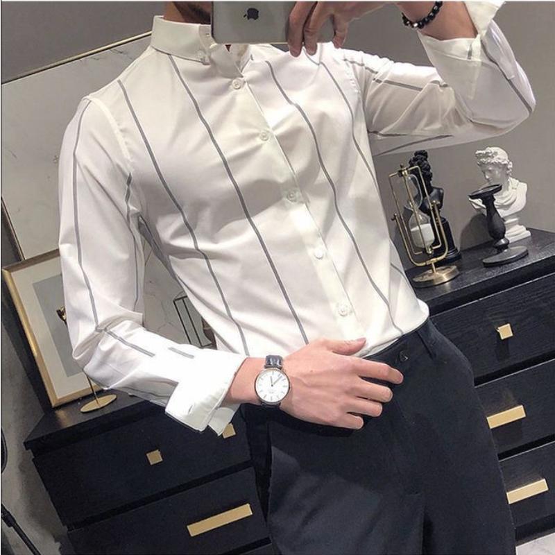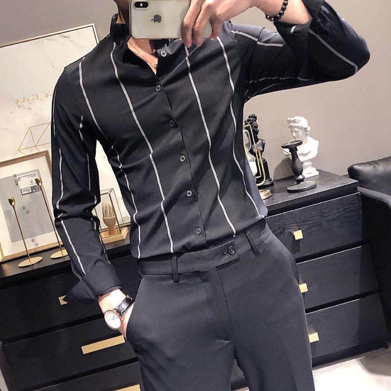 Мужская рубашка Корейская мода Полоска Базовый стиль Не требующая глажки Приталенная Костюм Воротник ПОЛО Однобортная Модная Повседневная Для работы