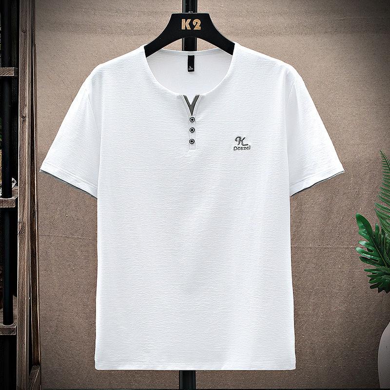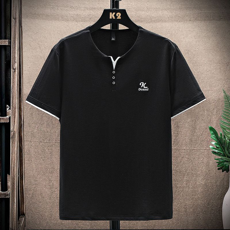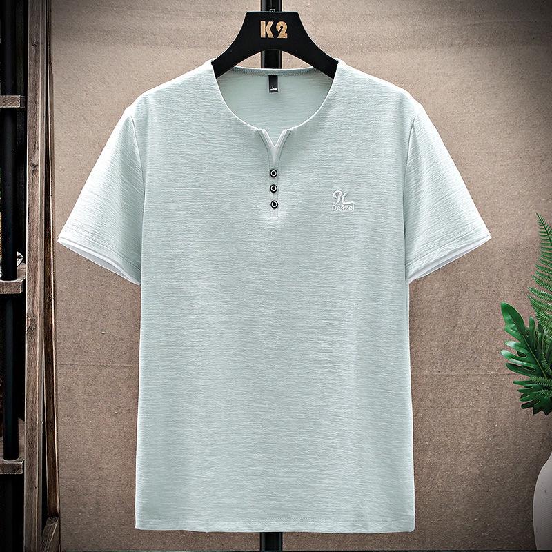 Мужская футболка с коротким рукавом из ледяного шелка, летний тонкий топ с V-образным вырезом
